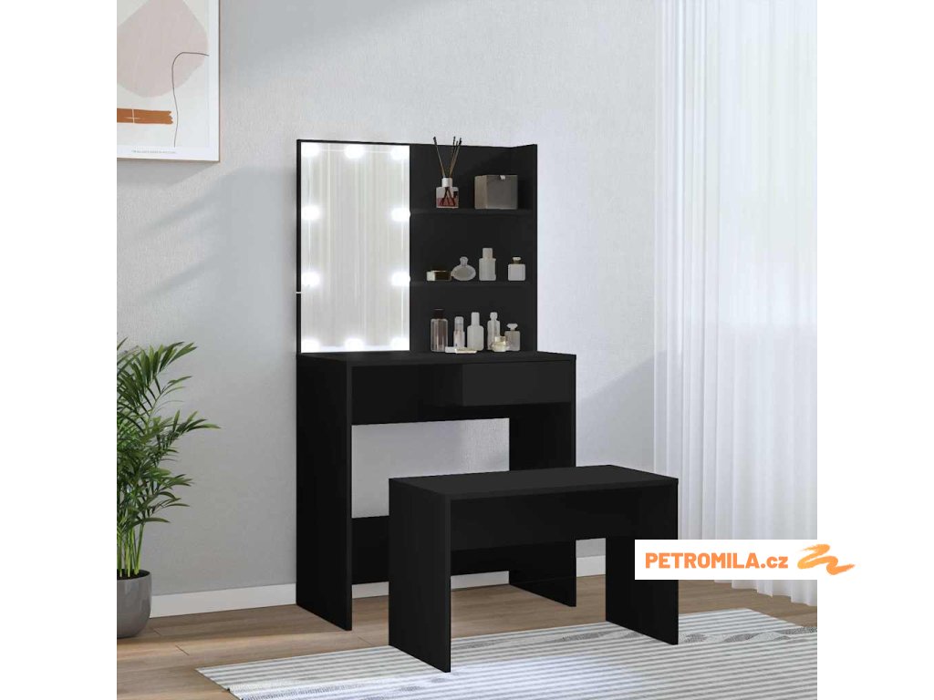 Tento moderní toaletní stolek s příslušenstvím dodá vaší ložnici nadčasový, rafinovaný vzhled. Set toaletního stolku s LED je skvělým doplňkem do vaší ložnice a zároveň s ním budete mít kosmetiku hezky po ruce!