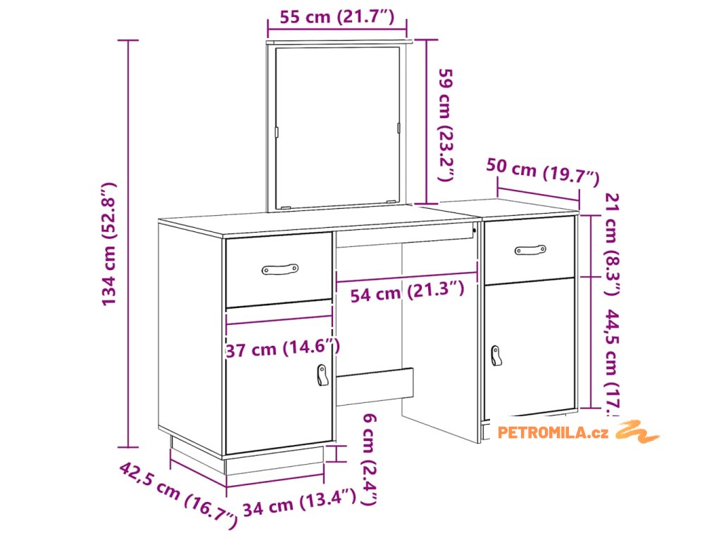 - Rozměry toaletního stolku: 95 x 50 x 134 cm (Š x H x V)