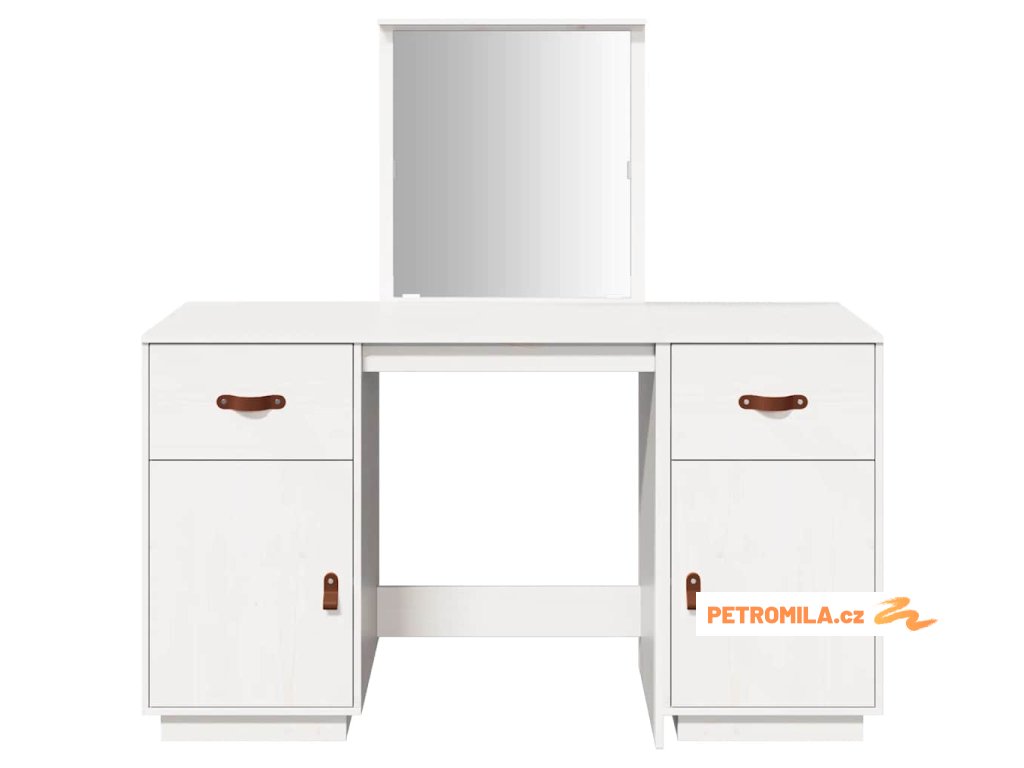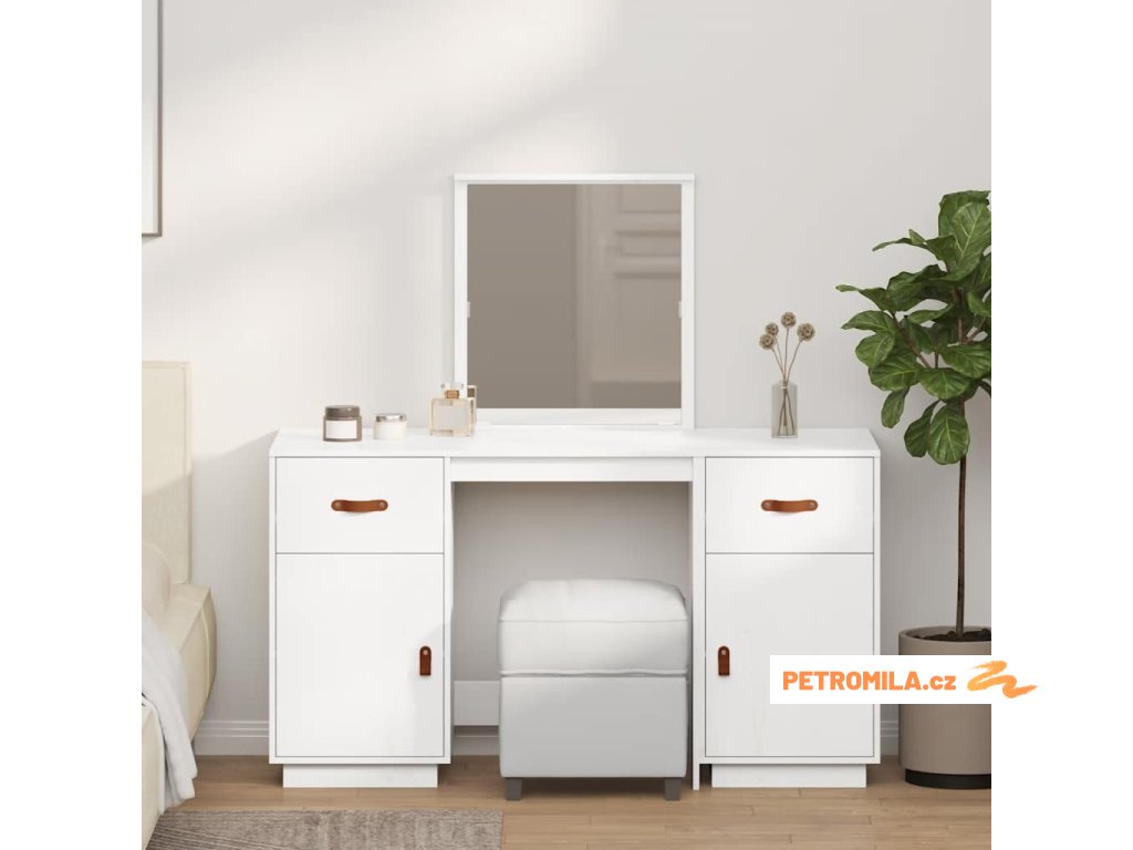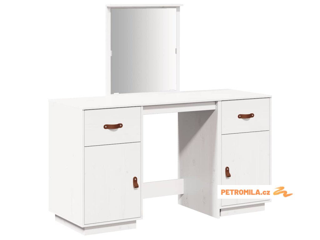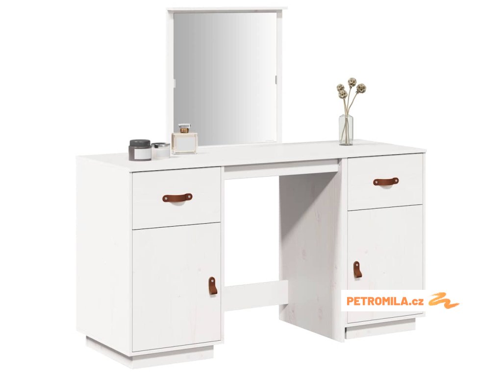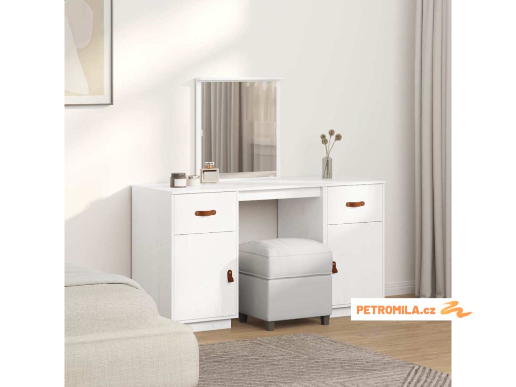 Set toaletního stolku se zrcadlem bílý masivní borové dřevo