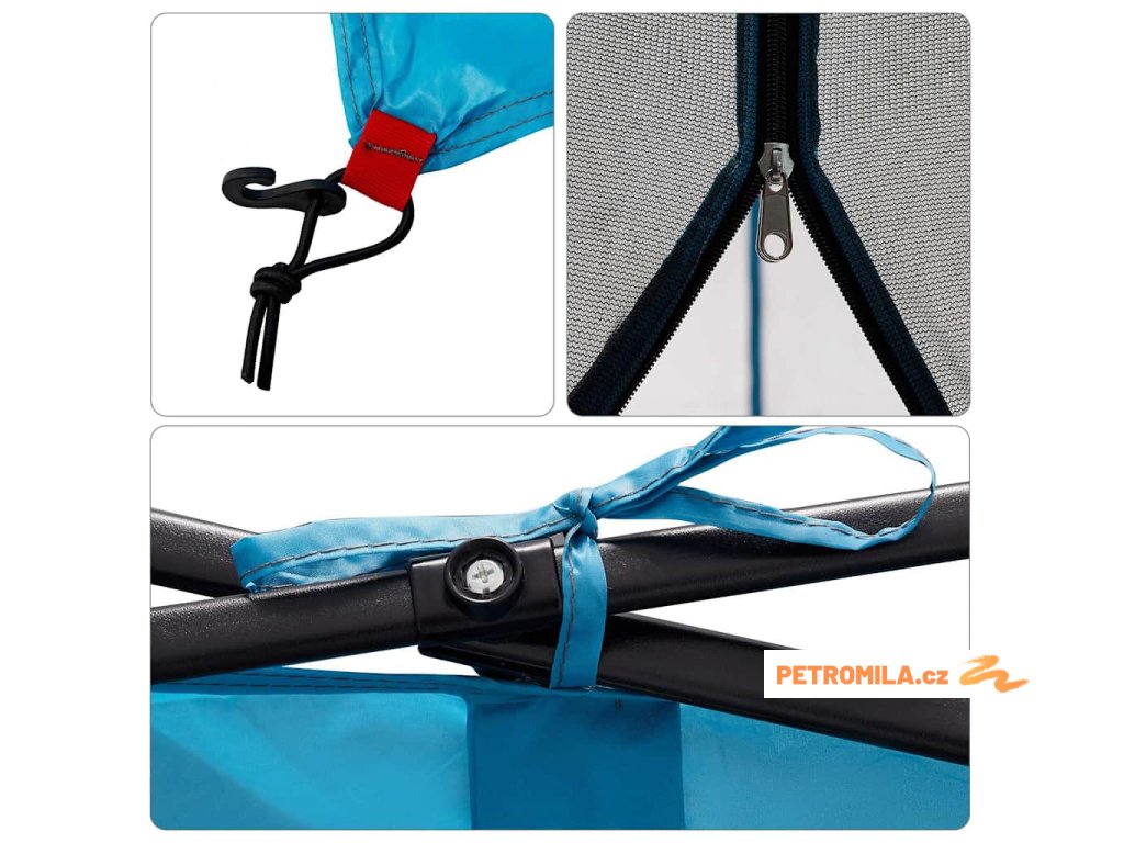 - Vylepšená odolnost: S jednoduchým zipem zůstává stan bezpečný, i když se počasí mění. Snadno se nastavuje a skládá, což dělá tvůj kempovací výlet bezstarostným a udržuje prostor uklizený.