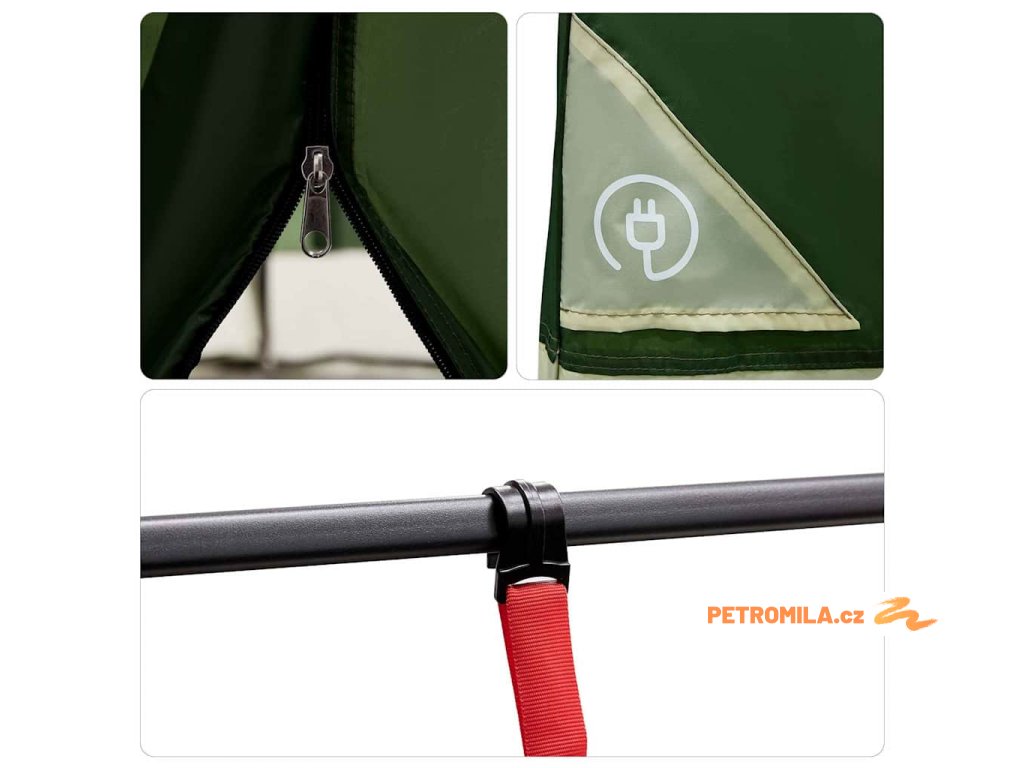 - Snadná údržba Stačí otřít materiál vlhkým hadříkem, aby ti stan dlouho vydržel. Je to jednoduché, co pomáhá udržet stan čerstvý a funkční dlouho.