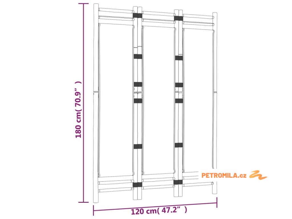 Skládací 3panelový paraván 120 cm bambus a plátno