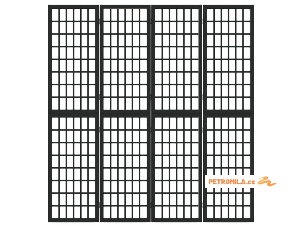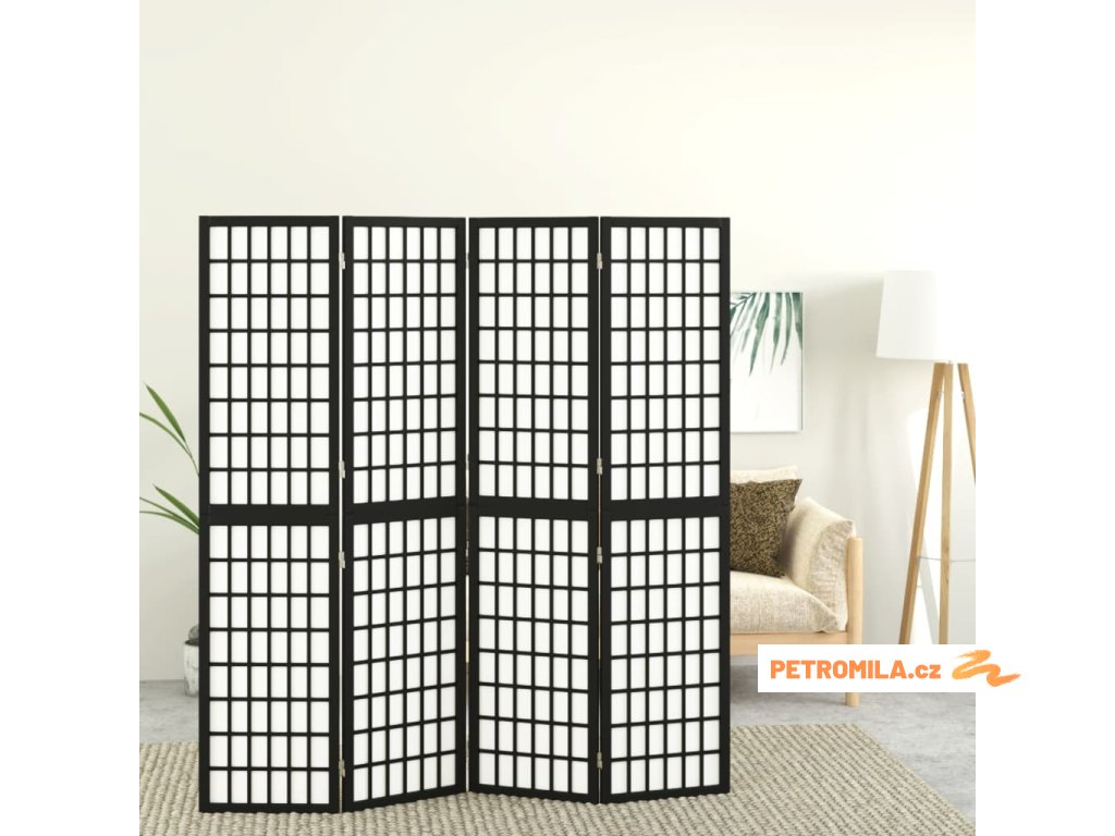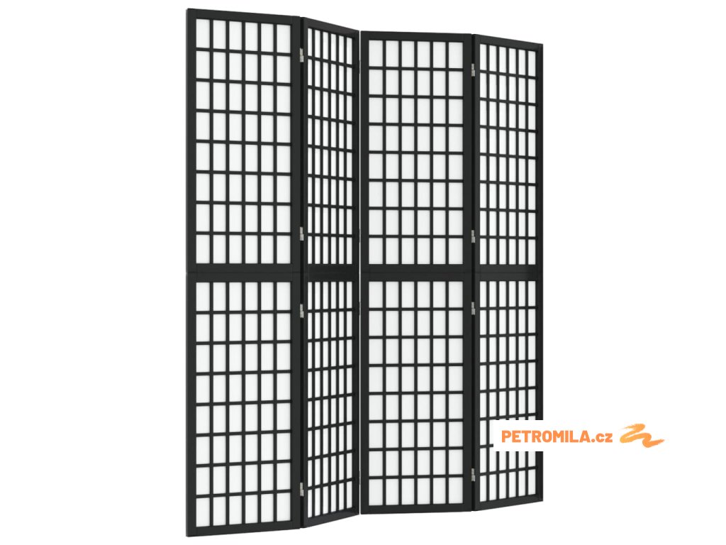 Skládací 4dílný paraván v japonském stylu 160 x 170 cm černý