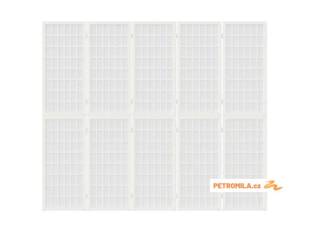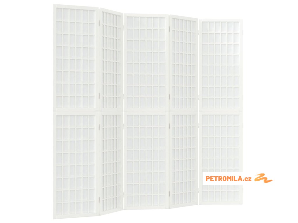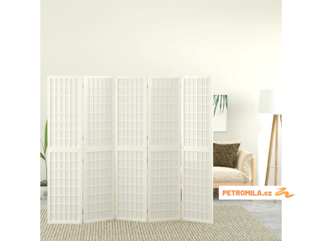Skládací 5dílný paraván v japonském stylu 200 x 170 cm bílý