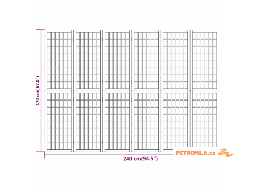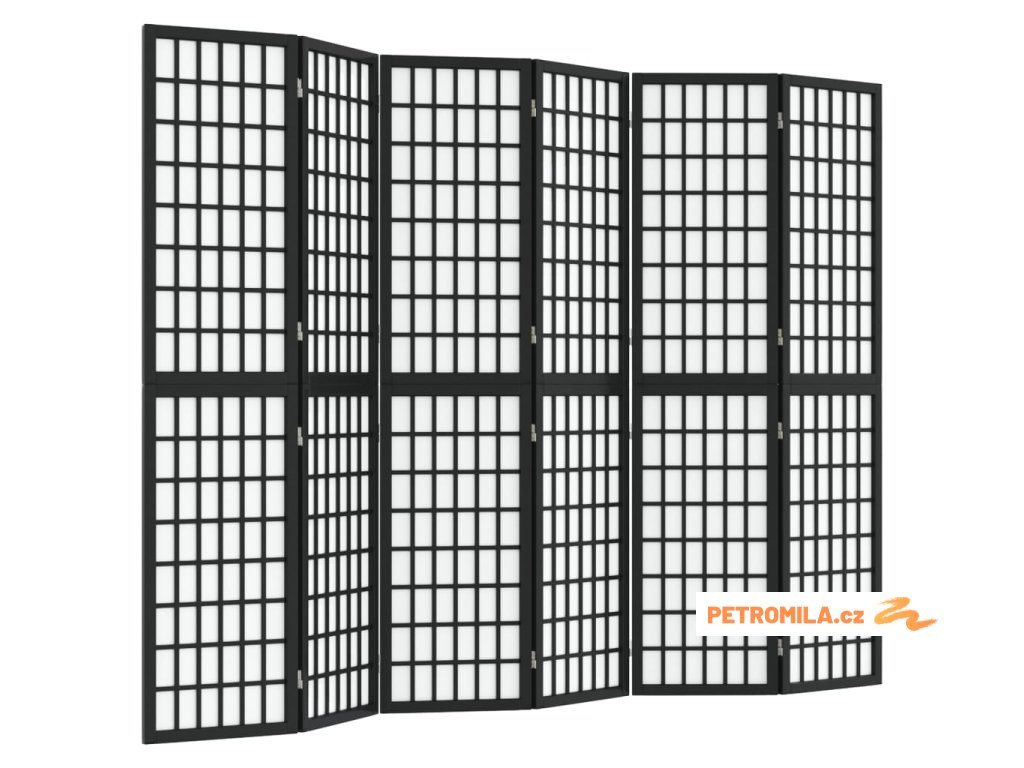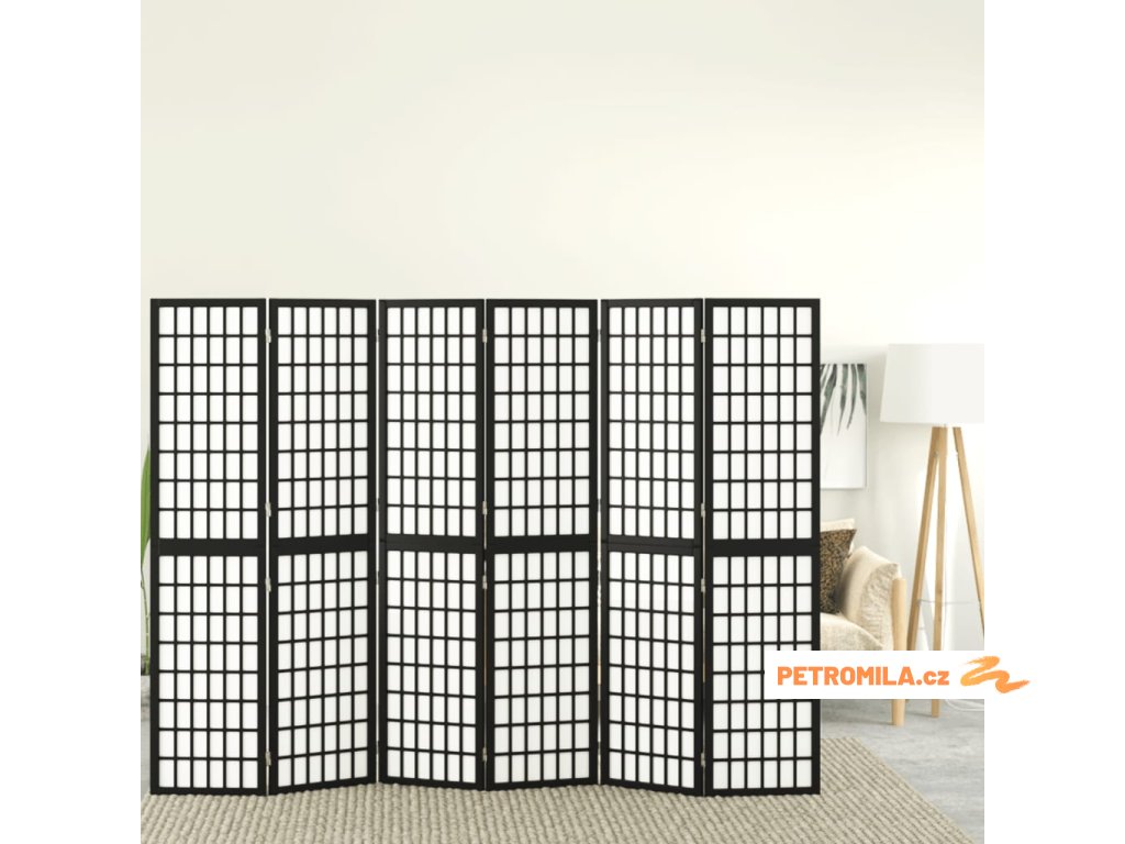 Skládací 6dílný paraván v japonském stylu 240 x 170 cm černý