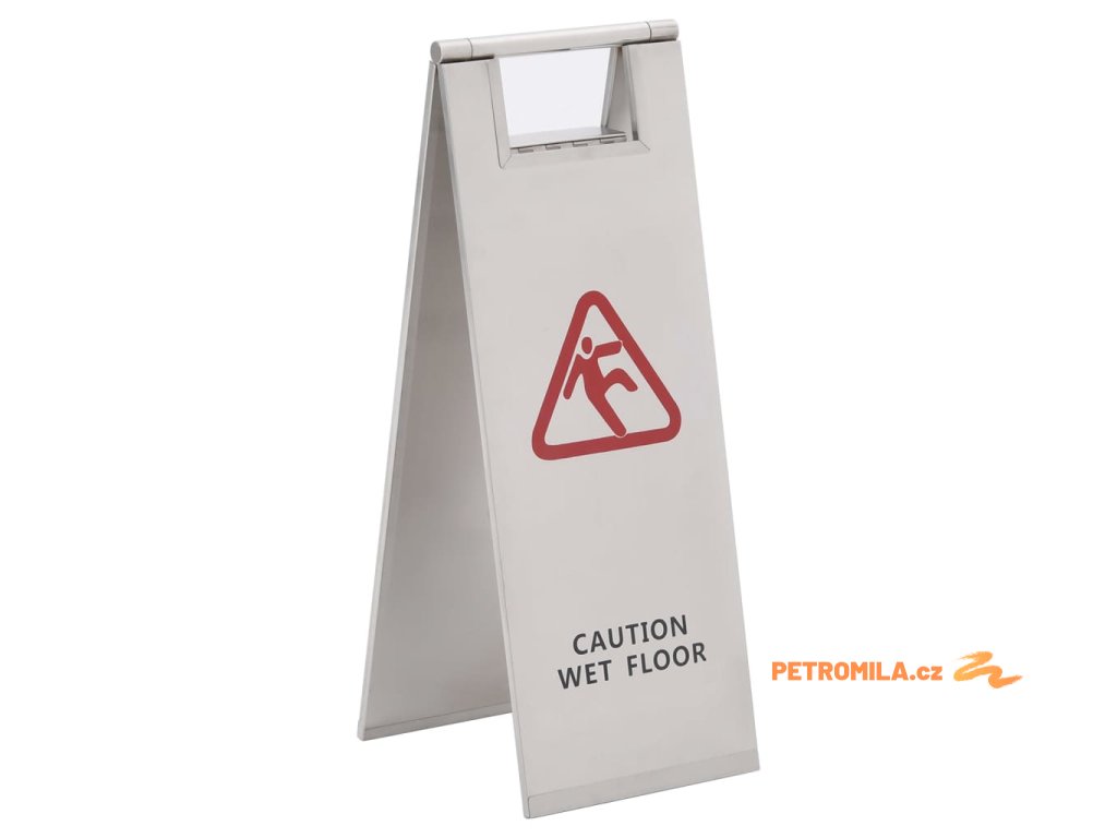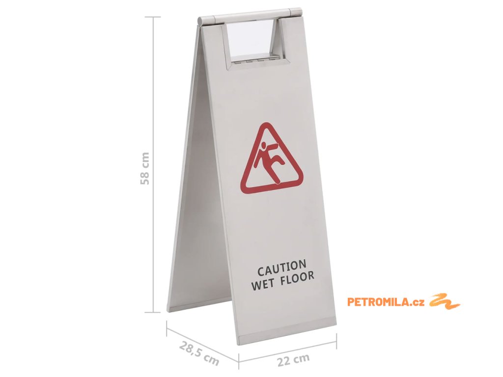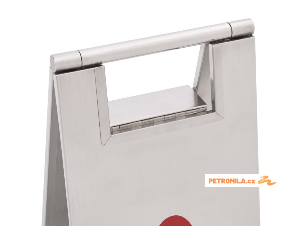 Cedule je vyrobená z nerezové oceli, která je korozivzdorná a snadno se čistí. Pasují do ní dva panely s výstrahou: z každé strany jeden. Značka má také rukojeť, aby se vám lépe přenášela. A když ji nepoužíváte, dá se složit pro jednoduché uskladnění.