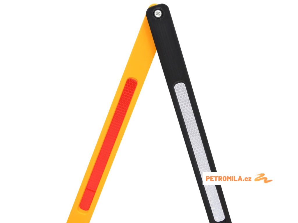 Tato bezpečnostní zábrana je vyrobena z pevného materiálu, je robustní a odolná a vhodná pro dlouhodobé venkovní použití. Díky skládacímu provedení se snadno přepravuje a skladuje a její délku si můžete upravit dle potřeby. Reflexní pruhy navíc zajišťují maximální viditelnost.