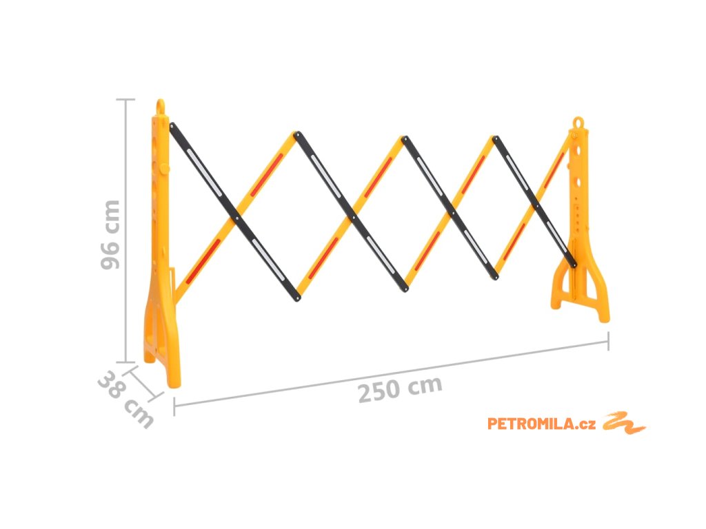 Skládací dopravní zábrana žlutočerná 250 x 38 x 96 cm