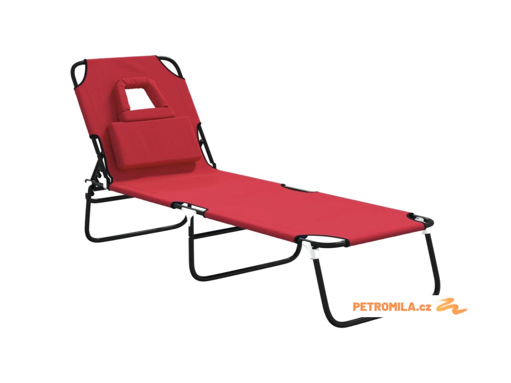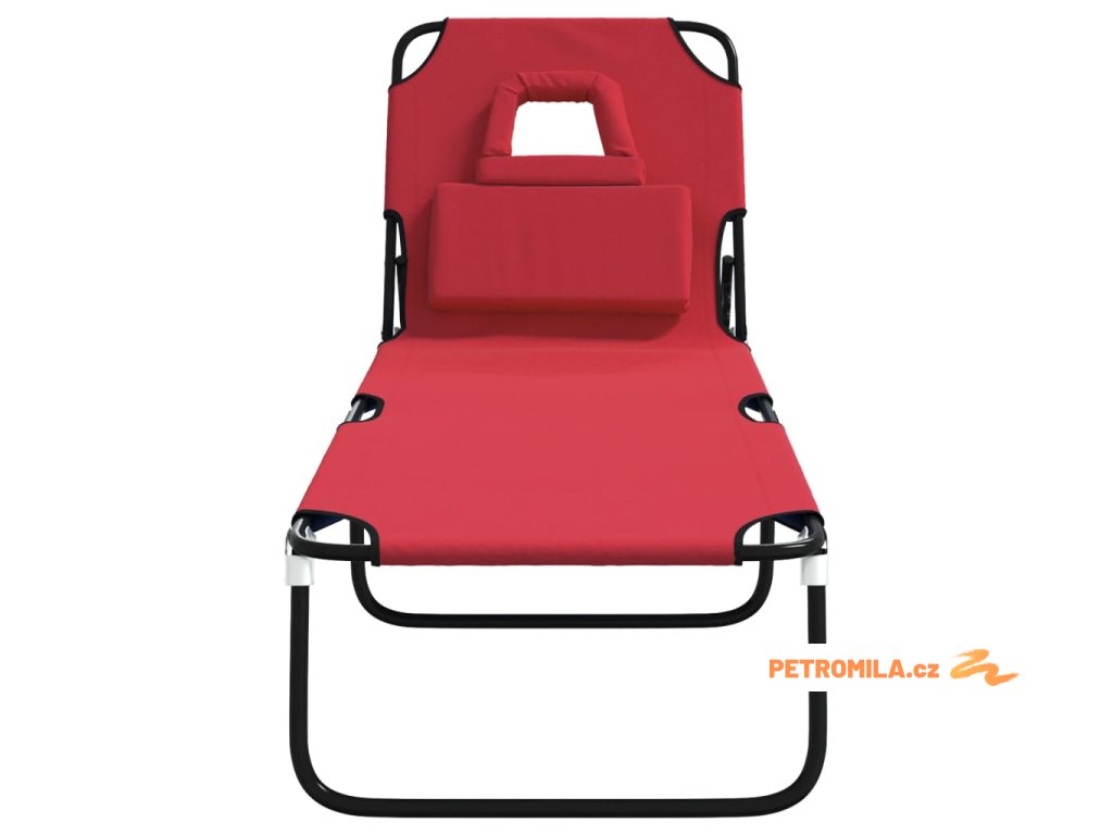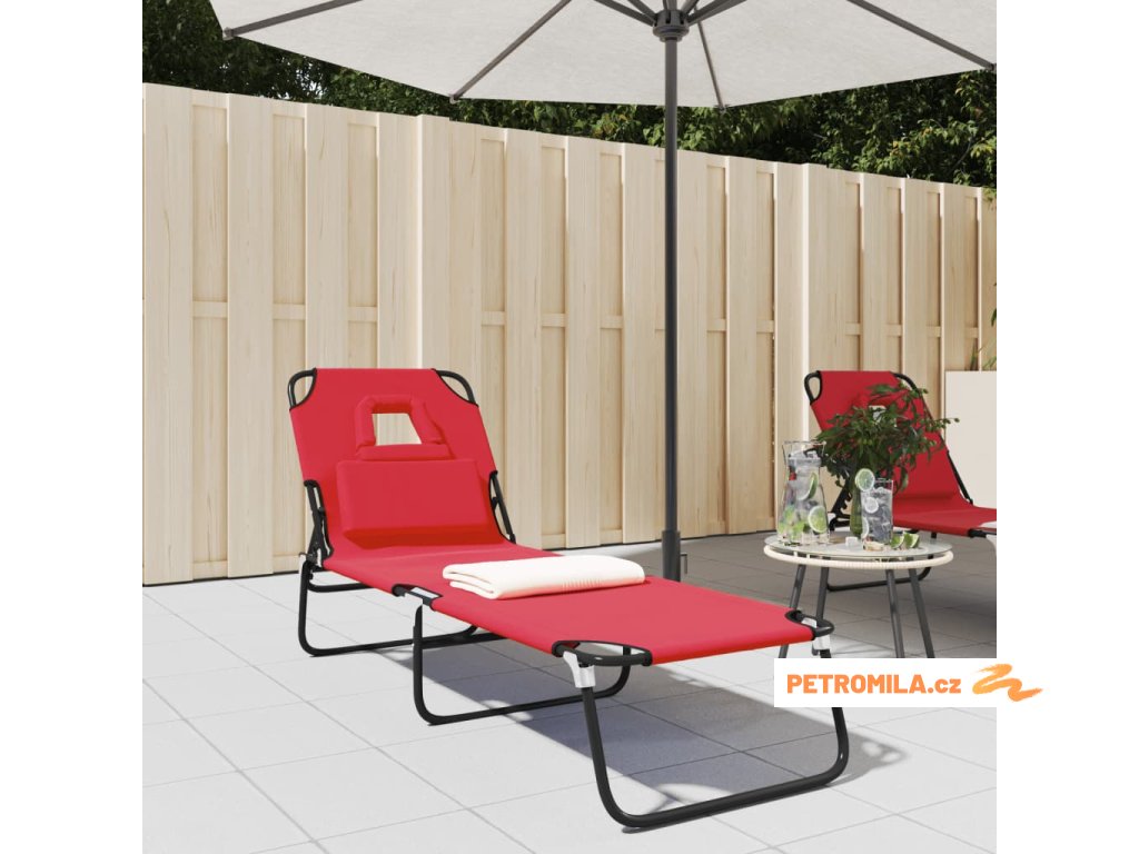 Skládací lehátko červené oxfordská tkanina a práškovaná ocel