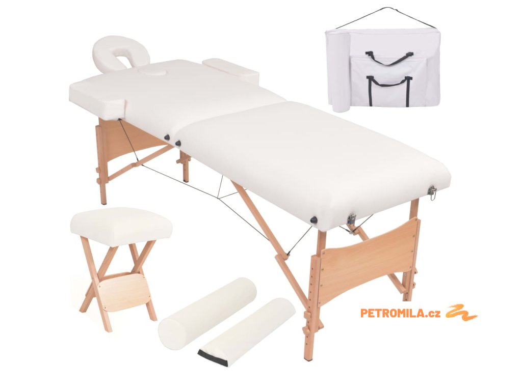 Skládací masážní stůl 2 zóny a stolička tloušťka 10 cm bílé