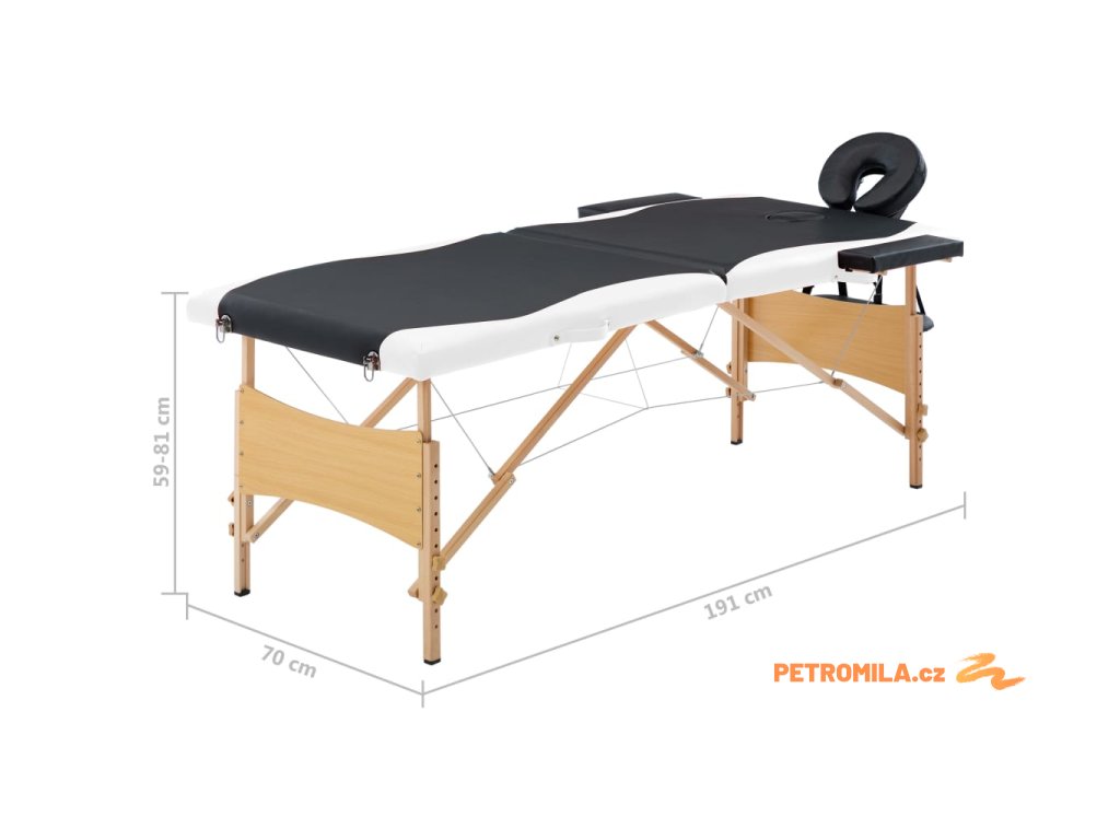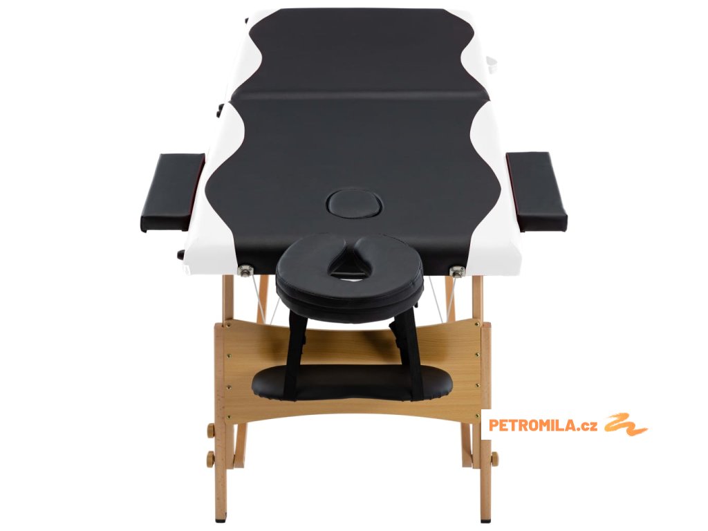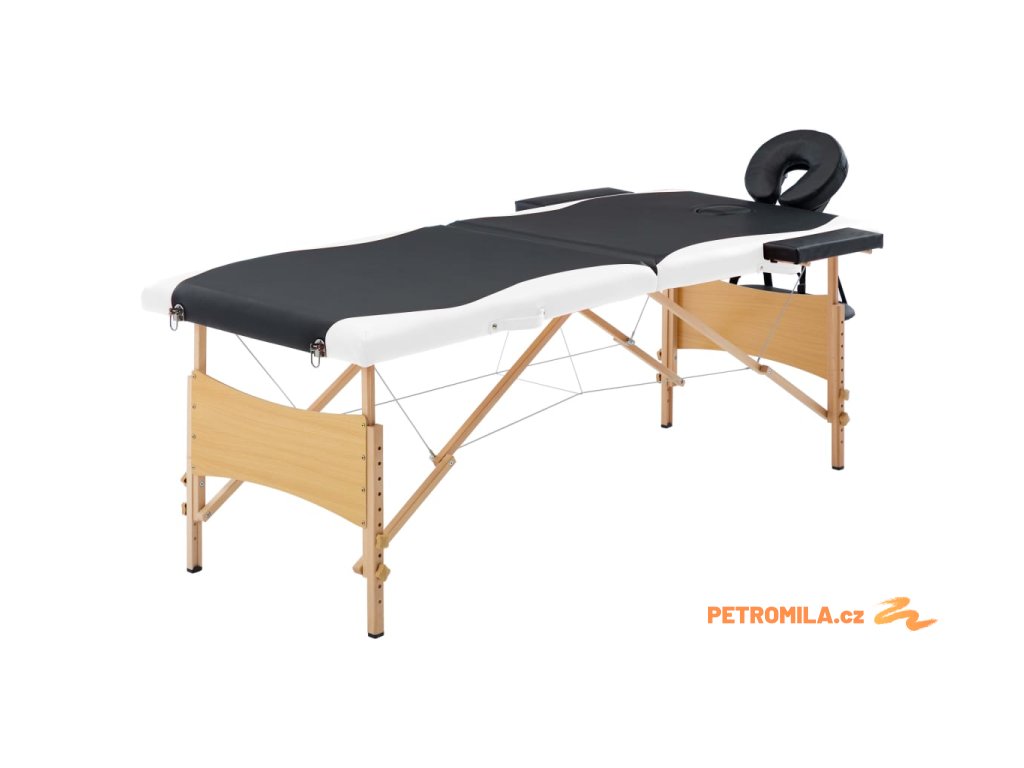Skládací masážní stůl 2 zóny dřevěný černý a bílý