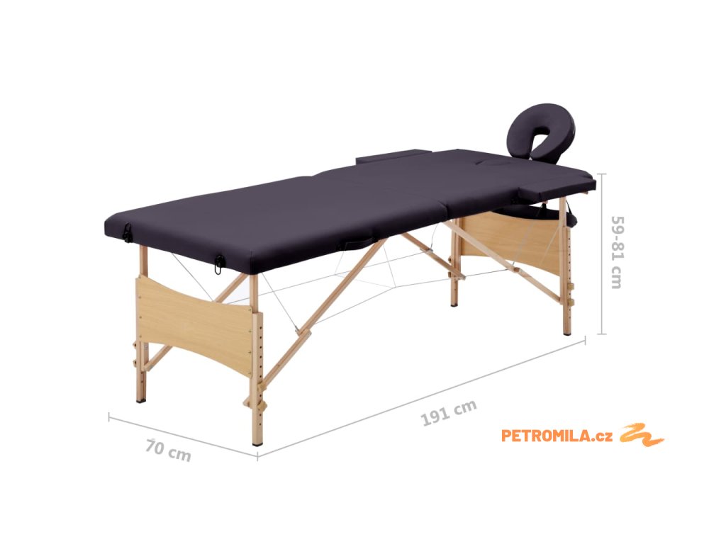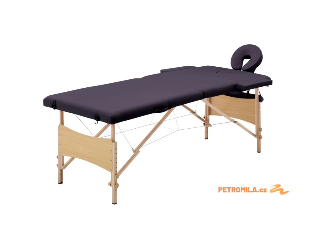 Skládací masážní stůl 2 zóny dřevěný fialový