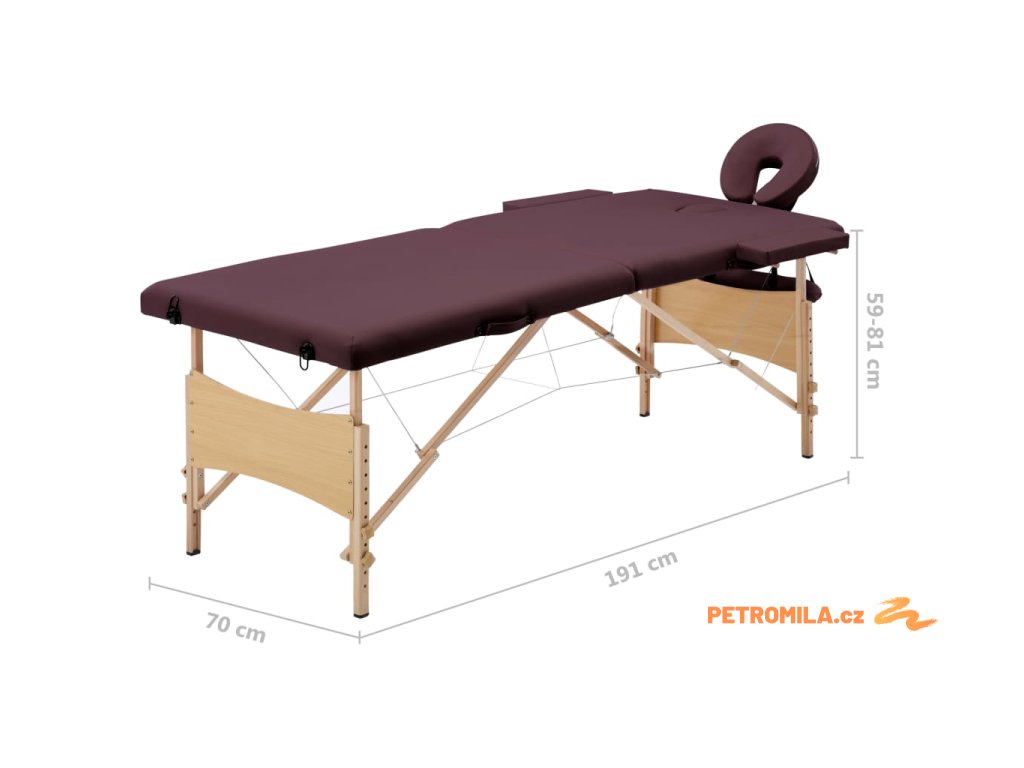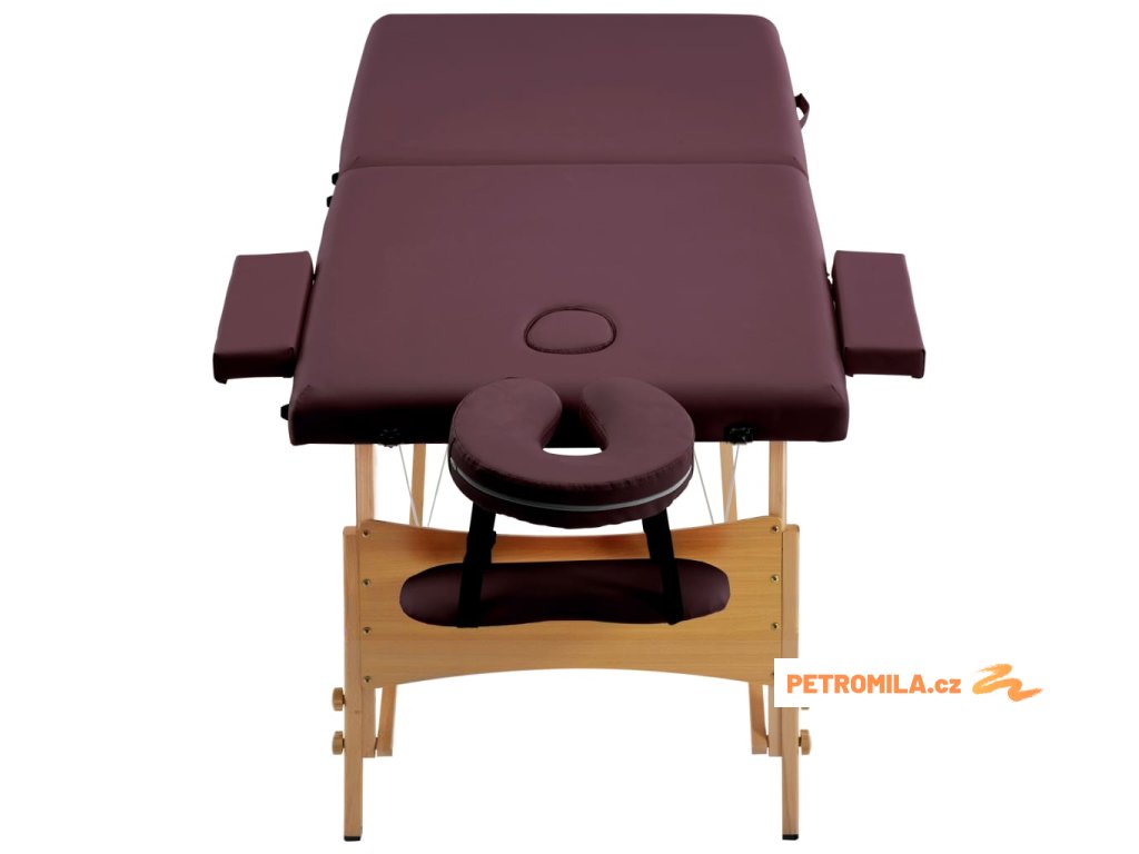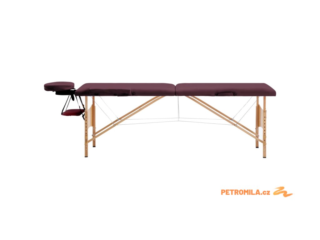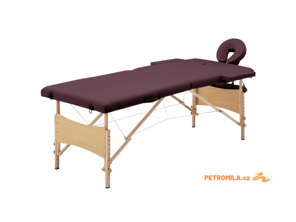 Skládací masážní stůl 2 zóny dřevěný vínově fialový
