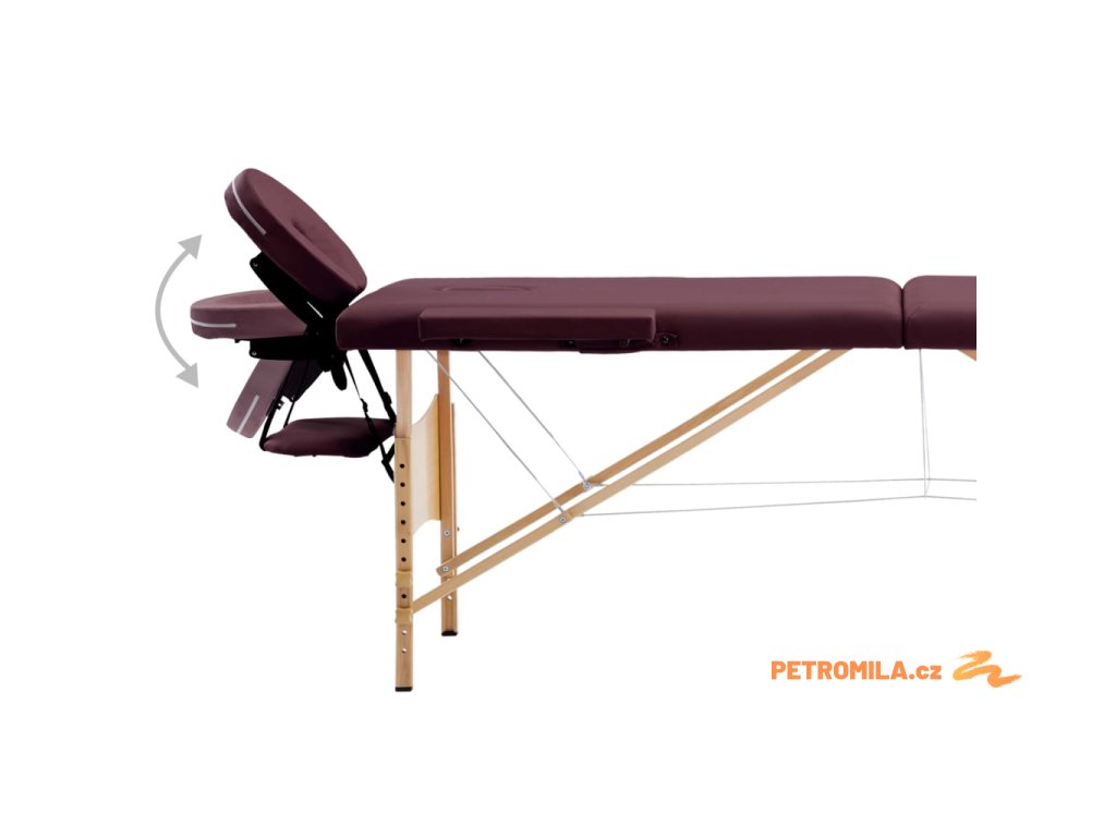 Skládací masážní stůl 3 zóny dřevěný vínově fialový