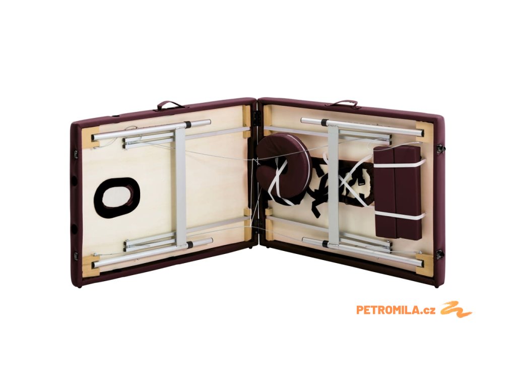 Skládací masážní stůl 3 zóny hliník vínově fialový