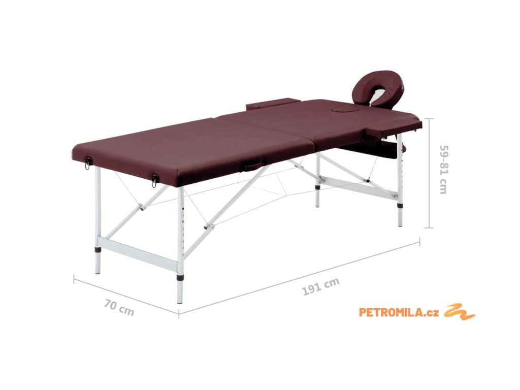 Skládací masážní stůl 2 zóny hliník vínově fialový