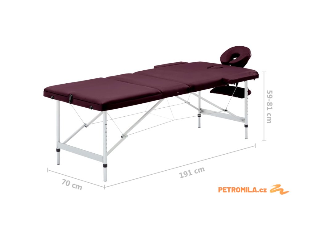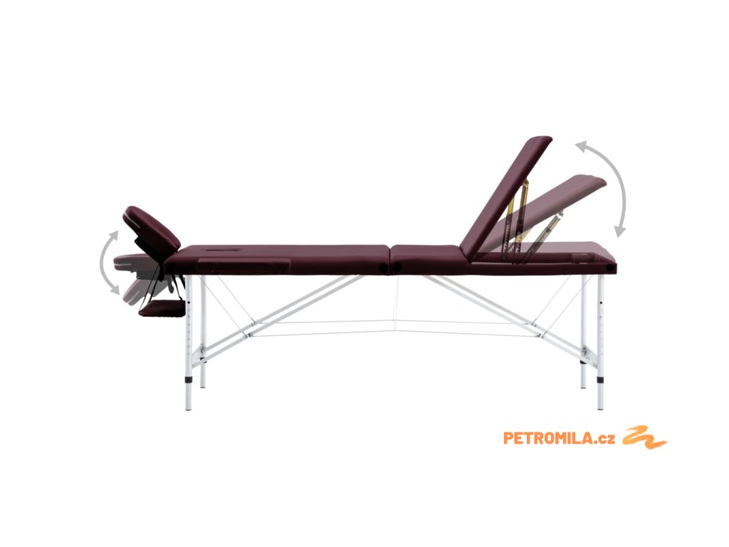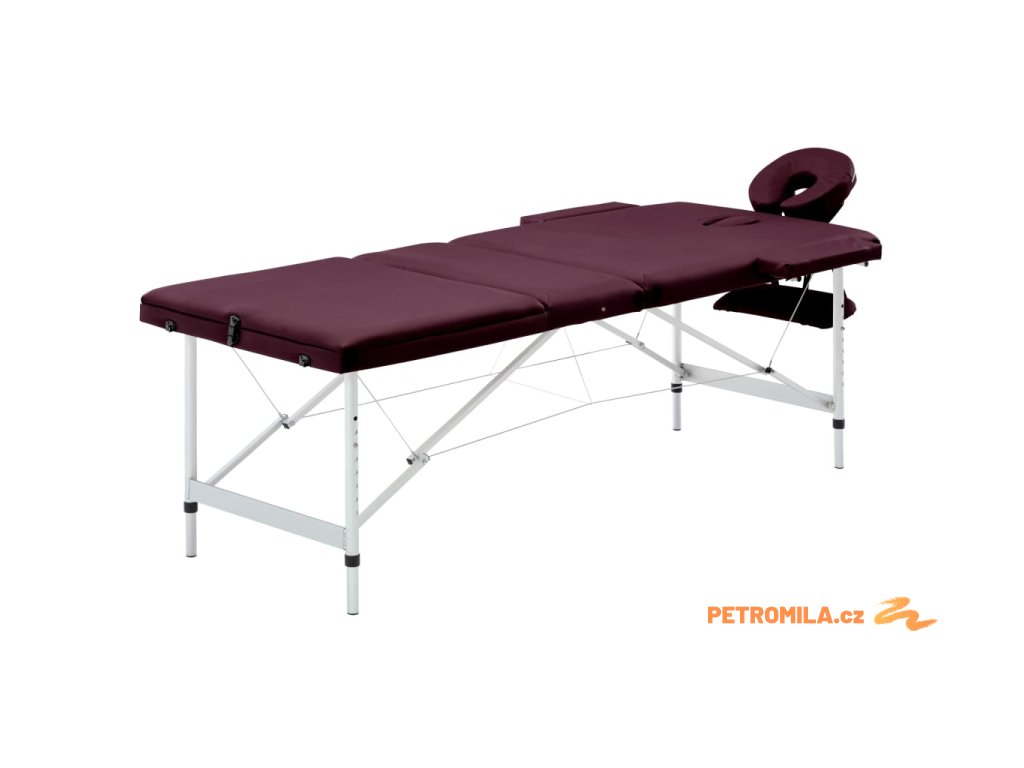 Skládací masážní stůl 3 zóny hliník vínově fialový