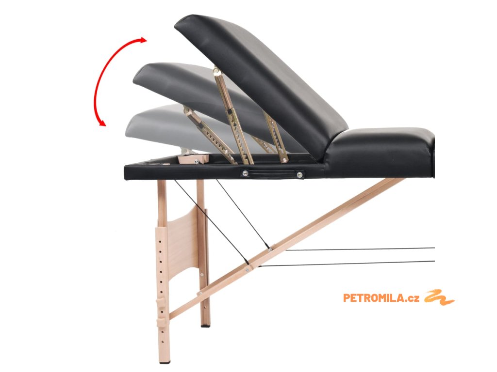 Černý skládací masážní stůl se 2 zónami a hliníkovým rámem