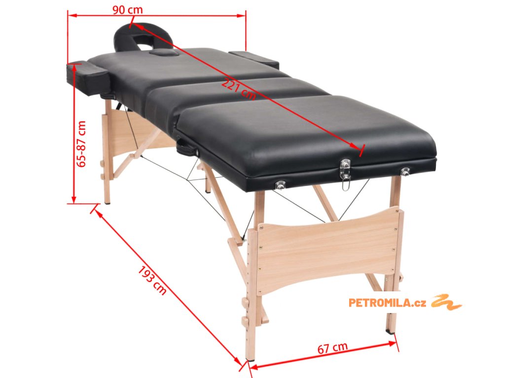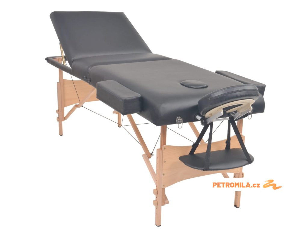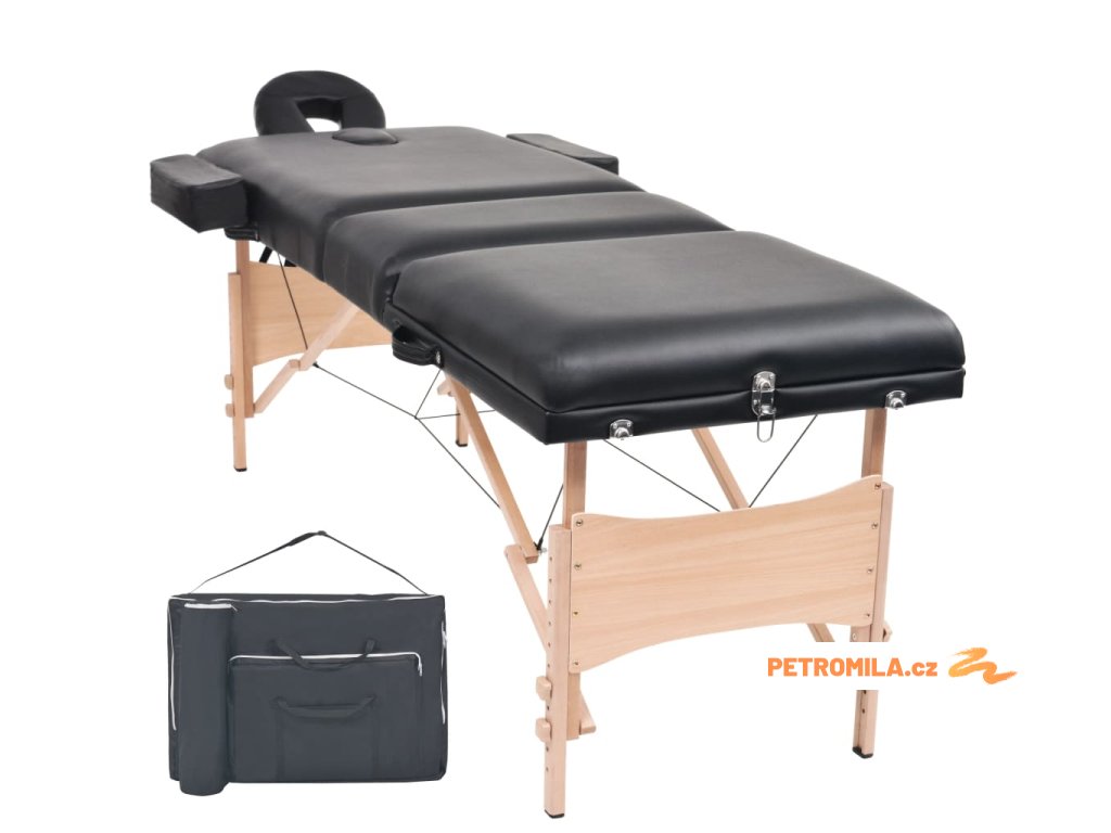 Skládací masážní stůl 3 zóny tloušťka 10 cm černý
