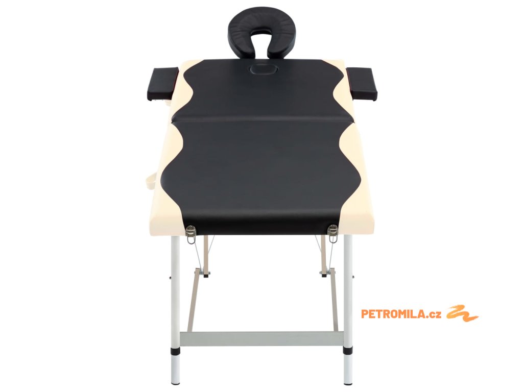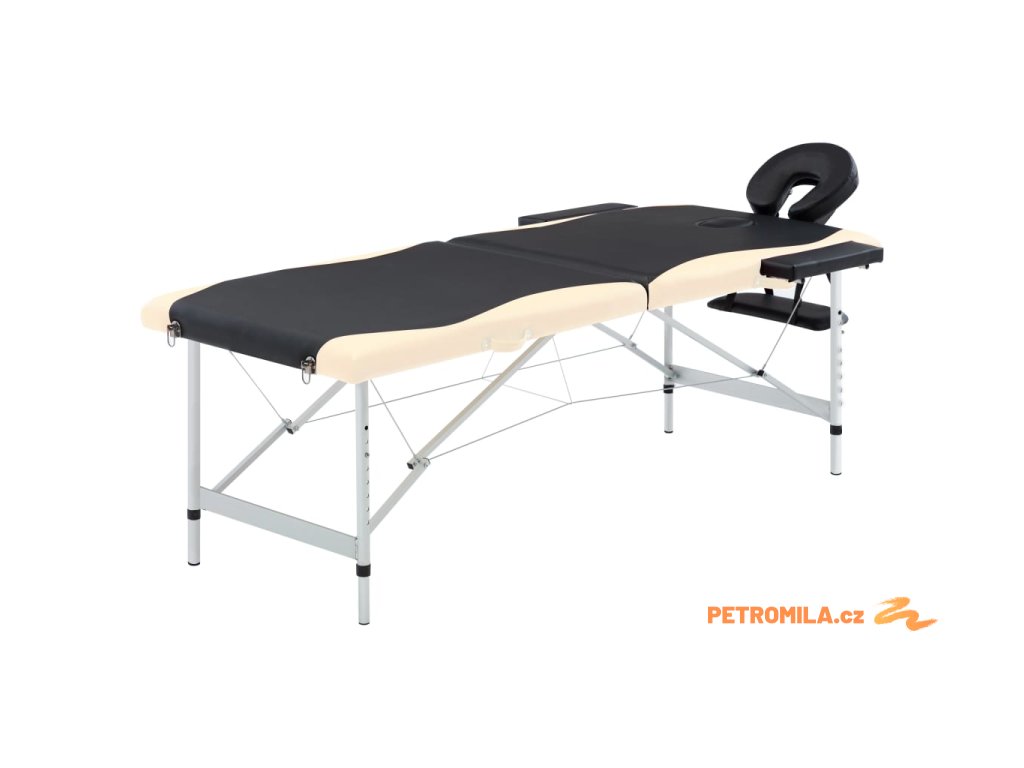 Skládací masážní stůl se 2 zónami hliník černý a béžový