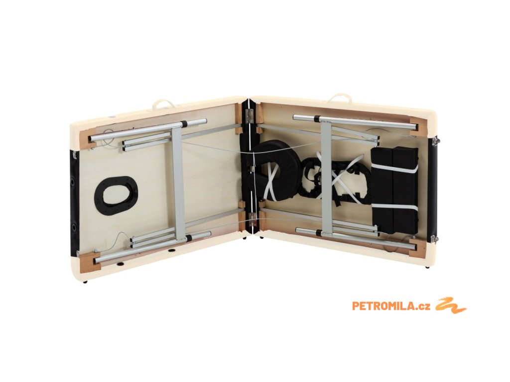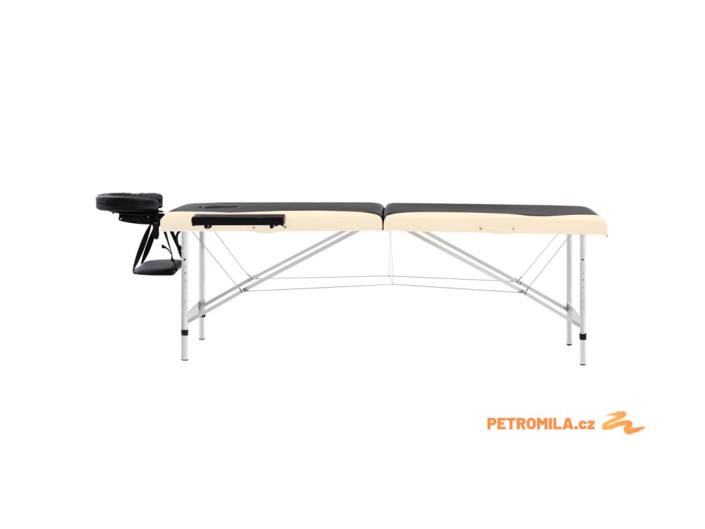 Krémově bílý skládací masážní stůl se 3 zónami a hliníkovým rámem