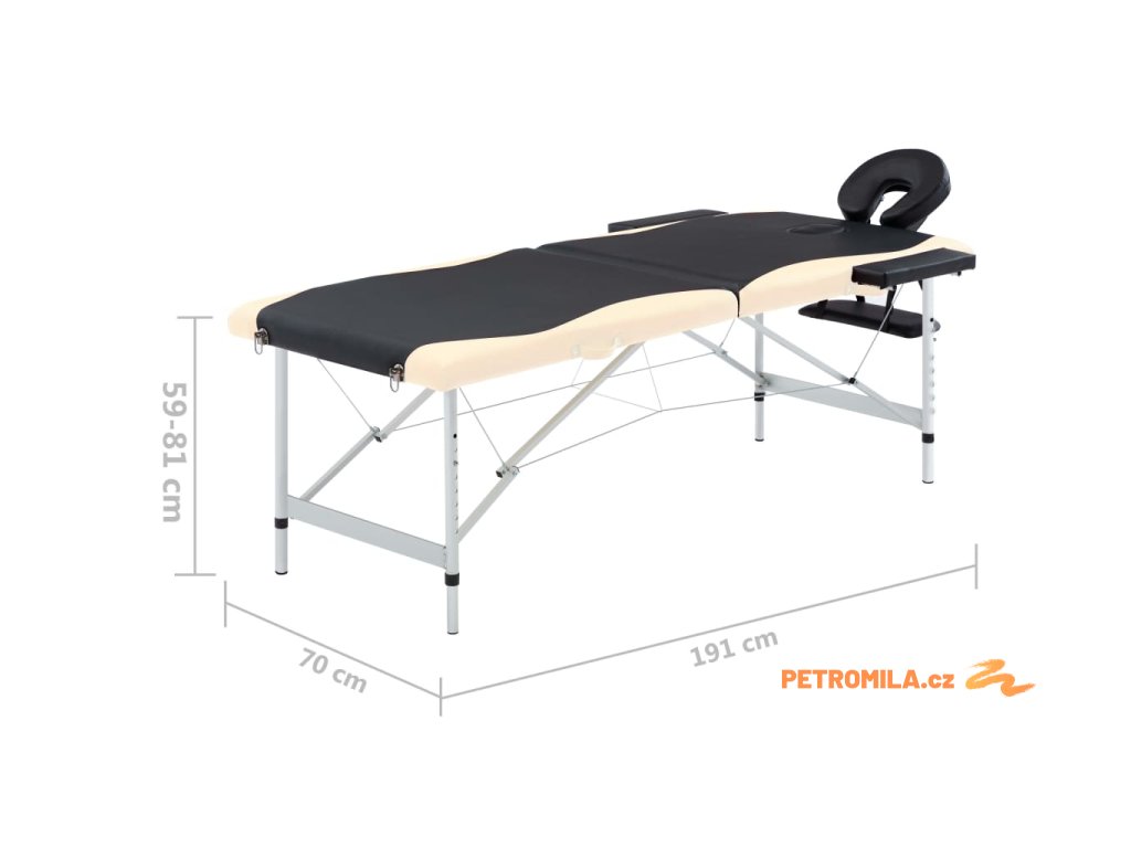 - Rozměry stolu bez opěrky hlavy: 191 x 70 cm (D x Š)