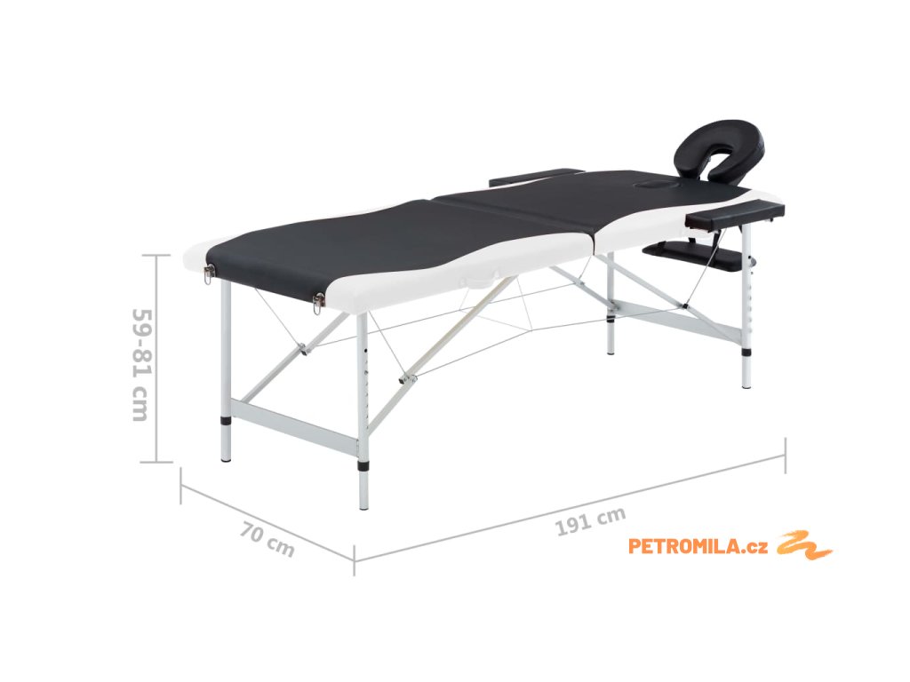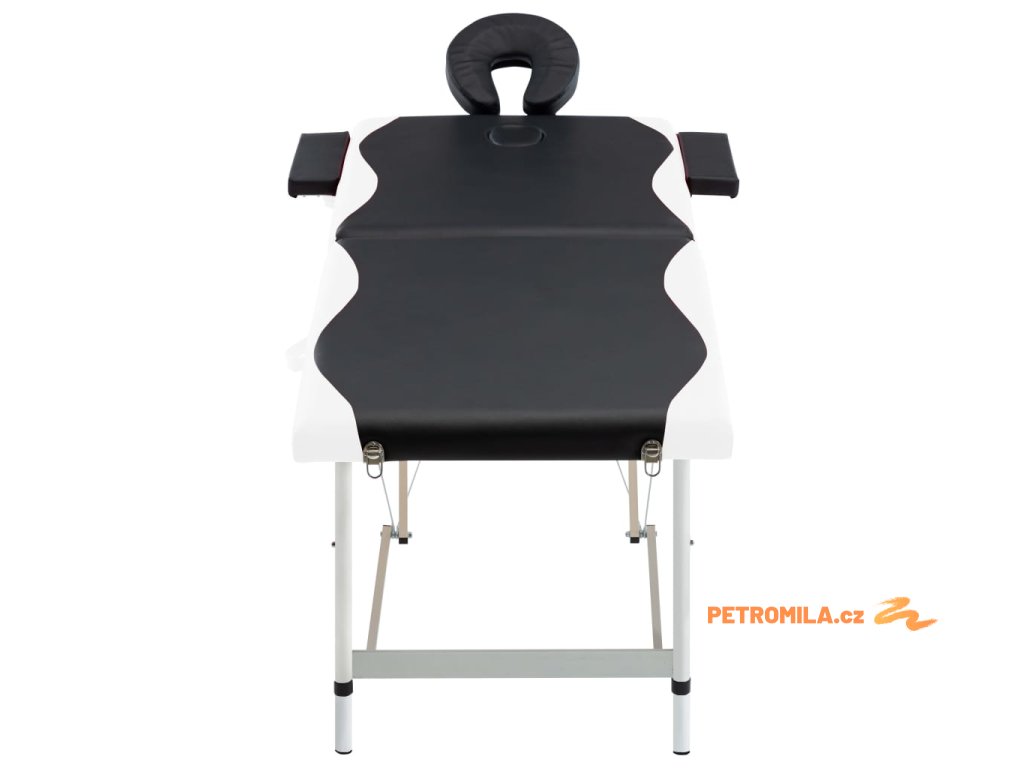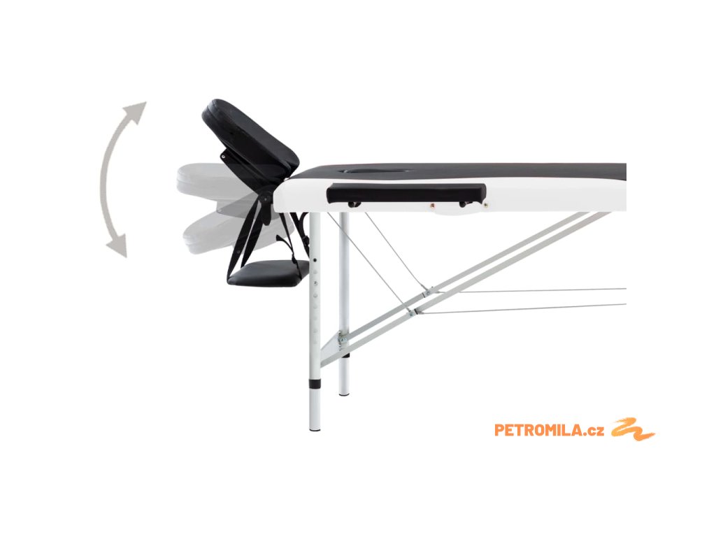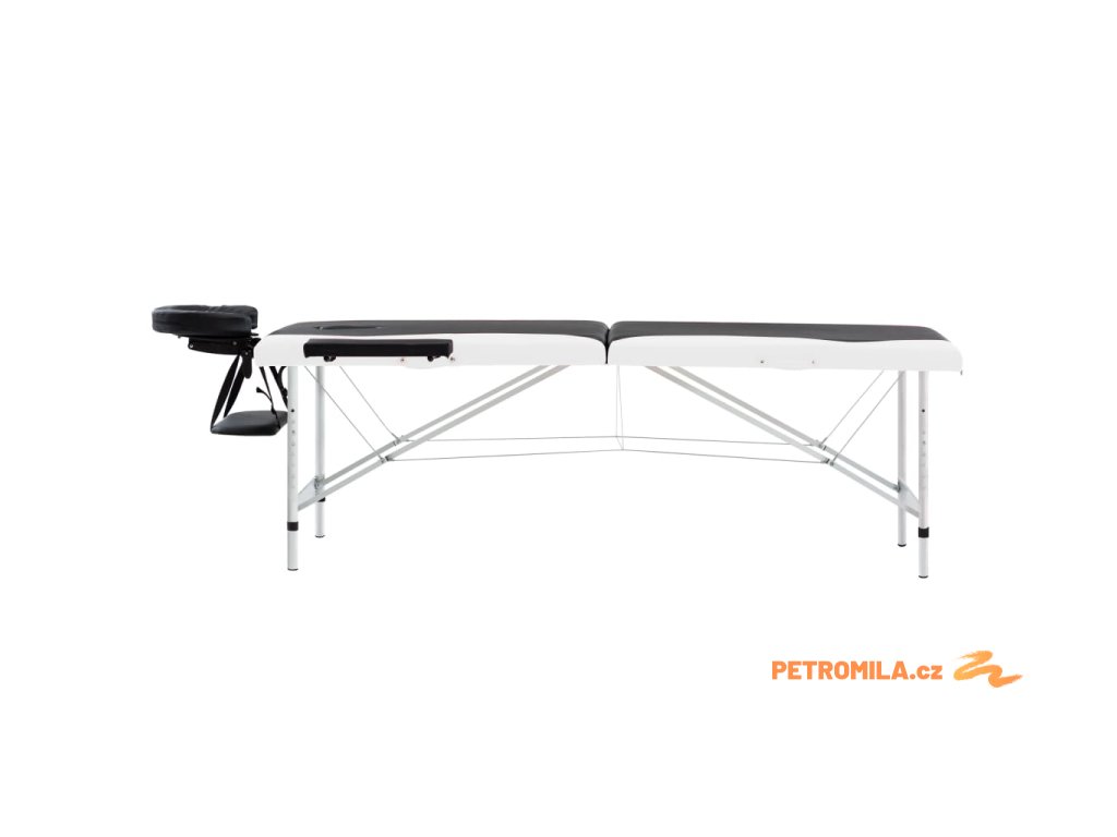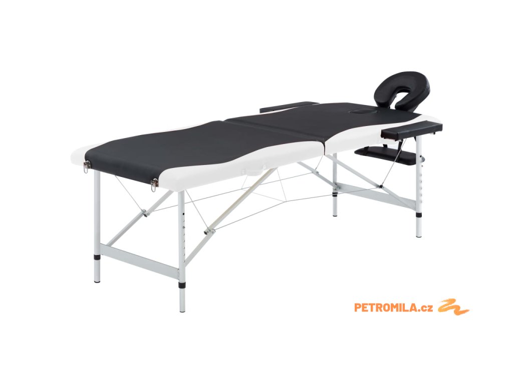 Skládací masážní stůl se 2 zónami hliník černý a bílý