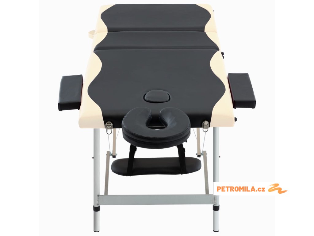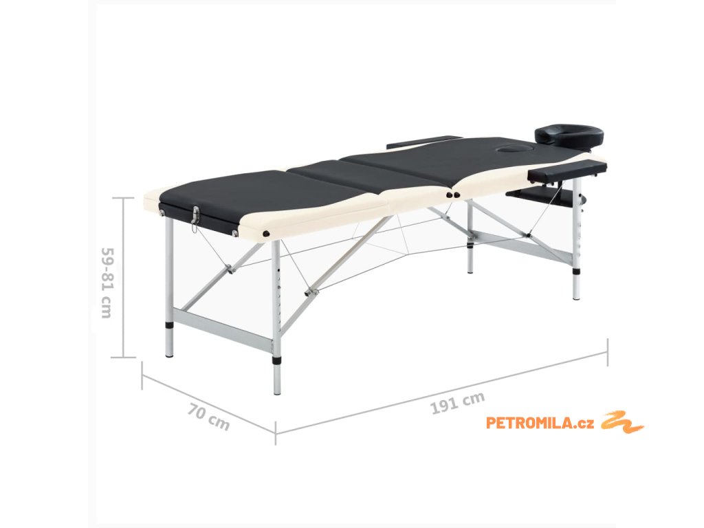 Skládací masážní stůl se 3 zónami hliník černý a bílý