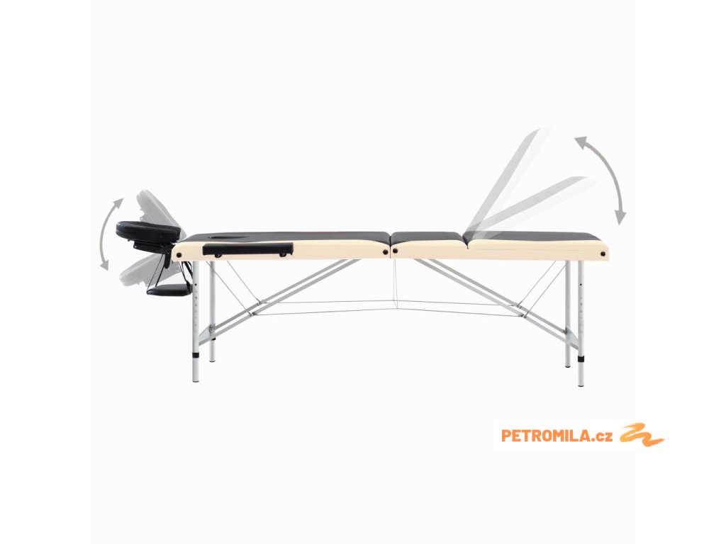 Skládací masážní stůl se 3 zónami hliník černý a béžový