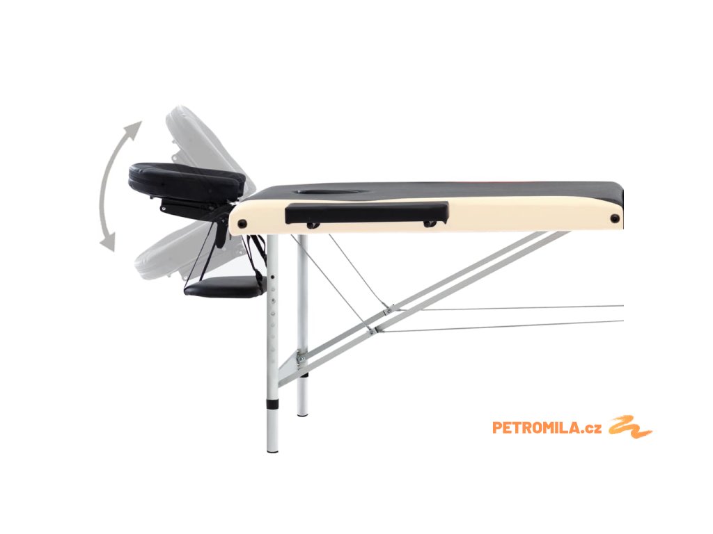Skládací masážní stůl se 2 zónami hliník černý a béžový