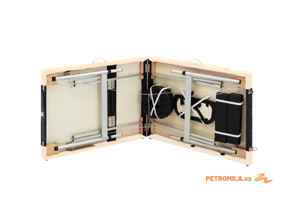 Krémově bílý skládací masážní stůl se 3 zónami a dřevěným rámem