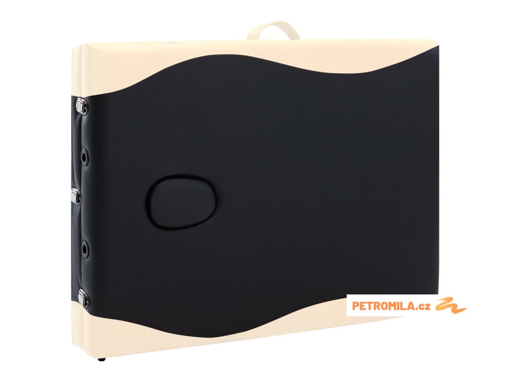 Černý skládací masážní stůl se 2 zónami a dřevěným rámem