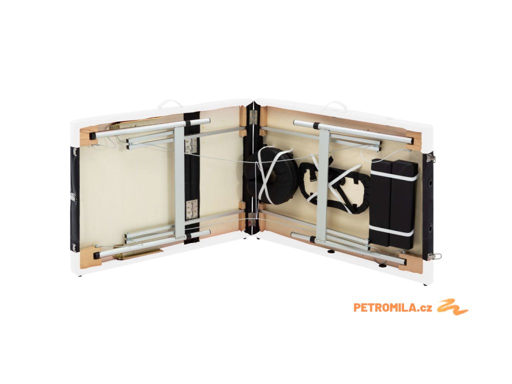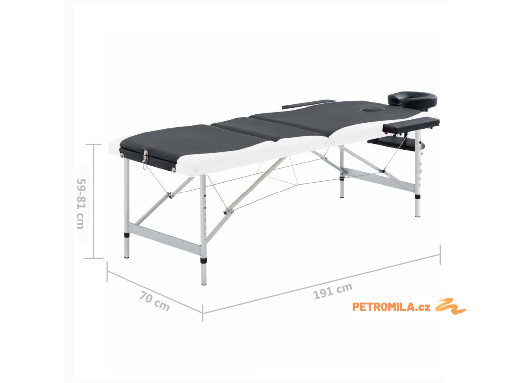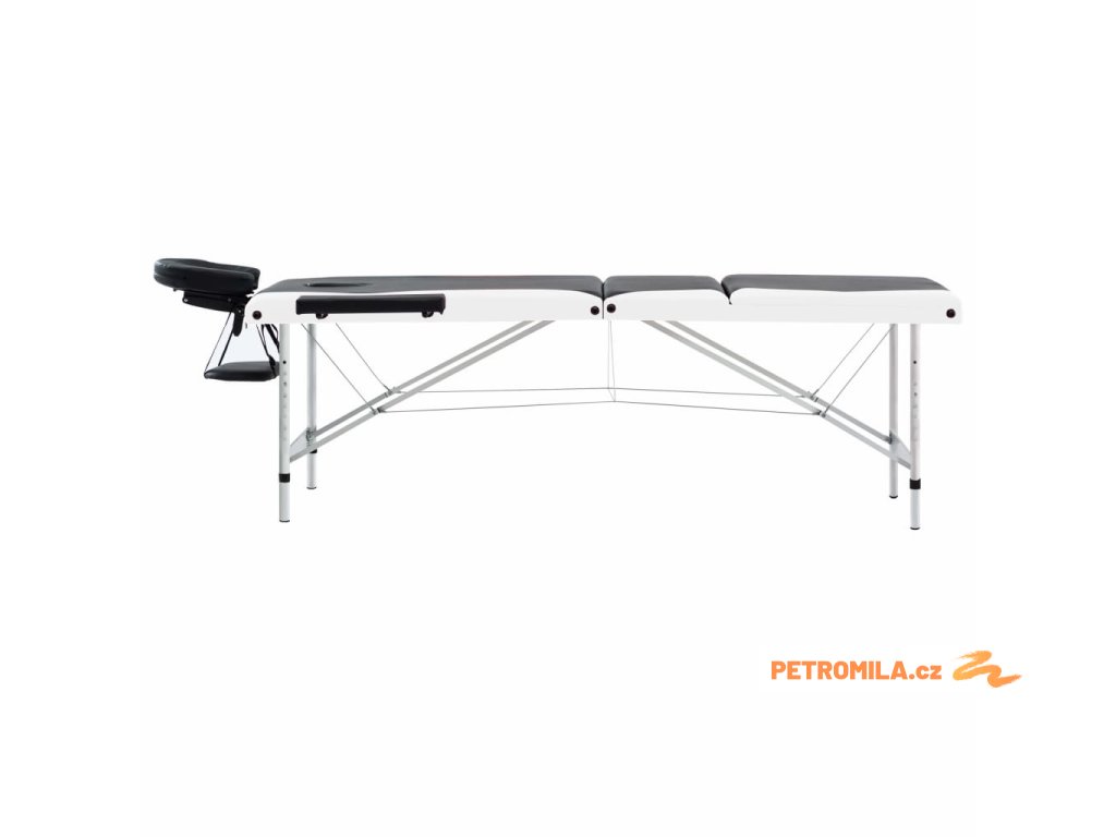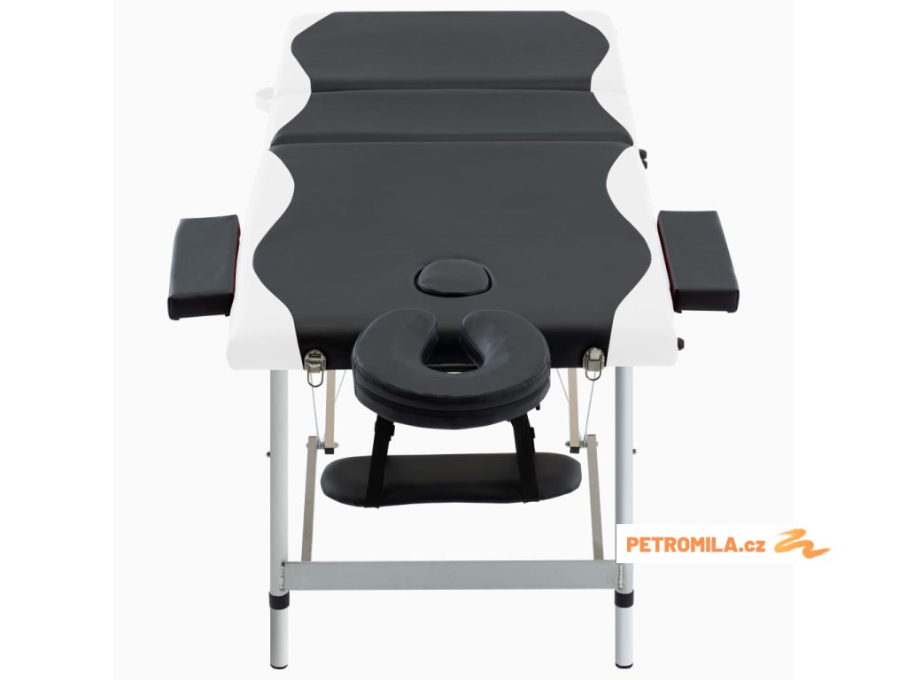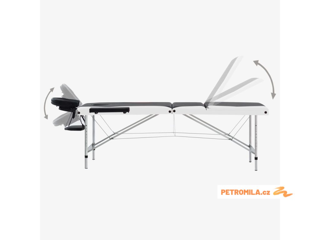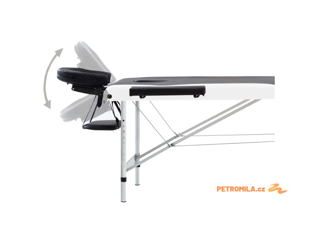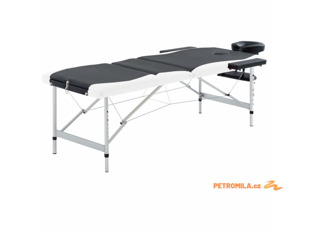 Skládací masážní stůl se 3 zónami hliník černý a bílý