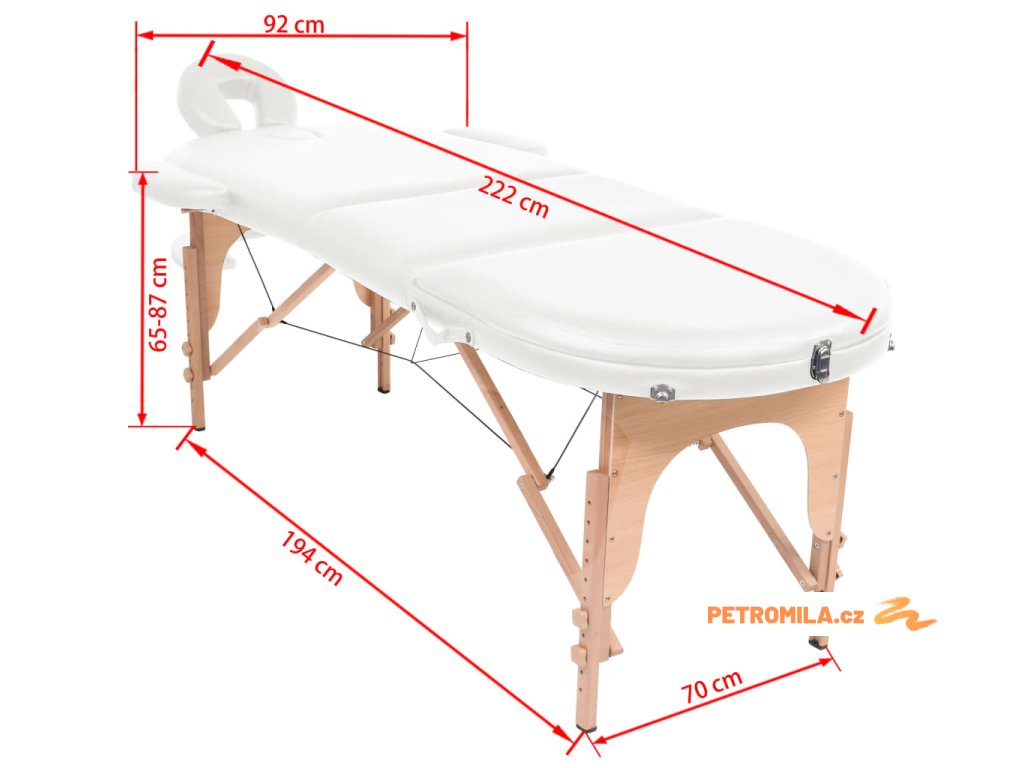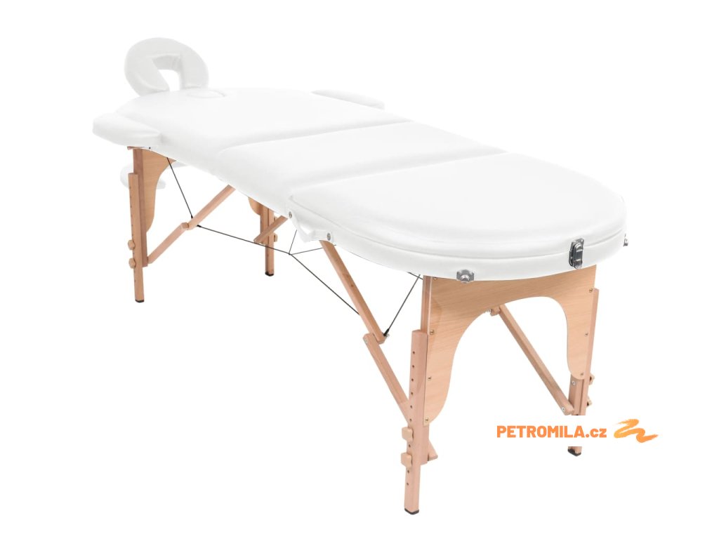 Skládací masážní stůl tloušťka 4 cm 2 podhlavníky oválný bílý