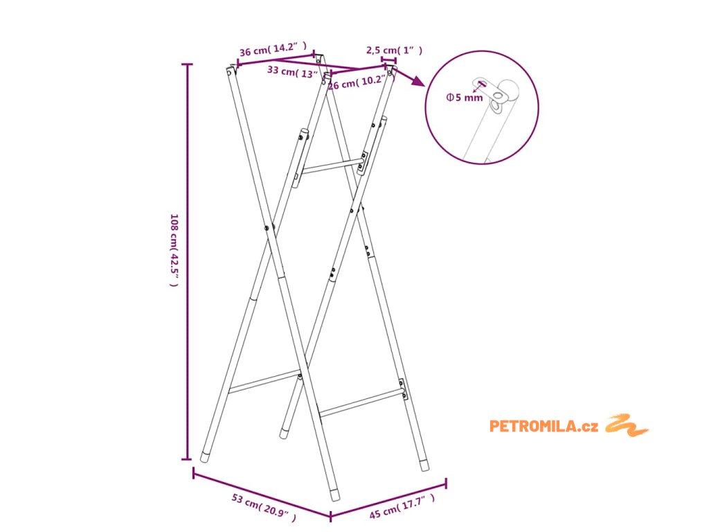 - Rozměry (při úplném rozložení): 45 x 53 x 108 cm (Š x H x V)
