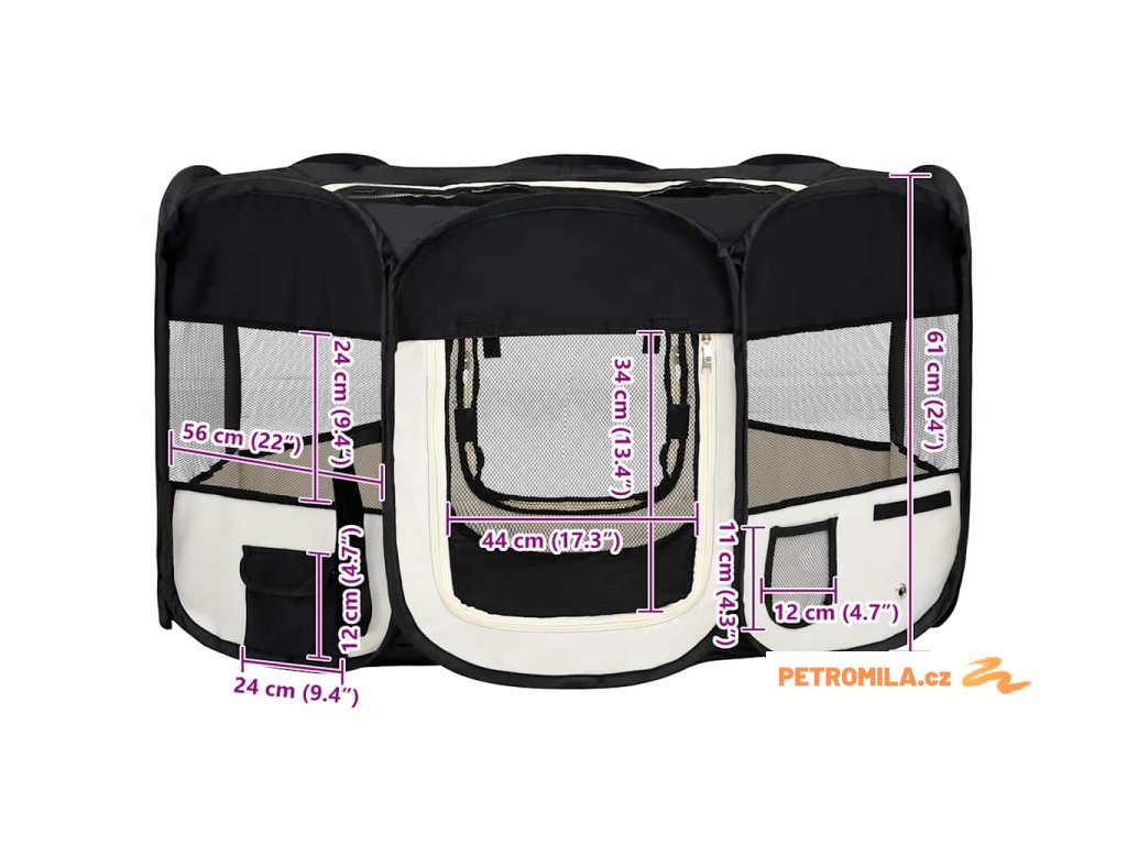 Skládací ohrádka pro psy s taškou černá 145 x 145 x 61 cm
