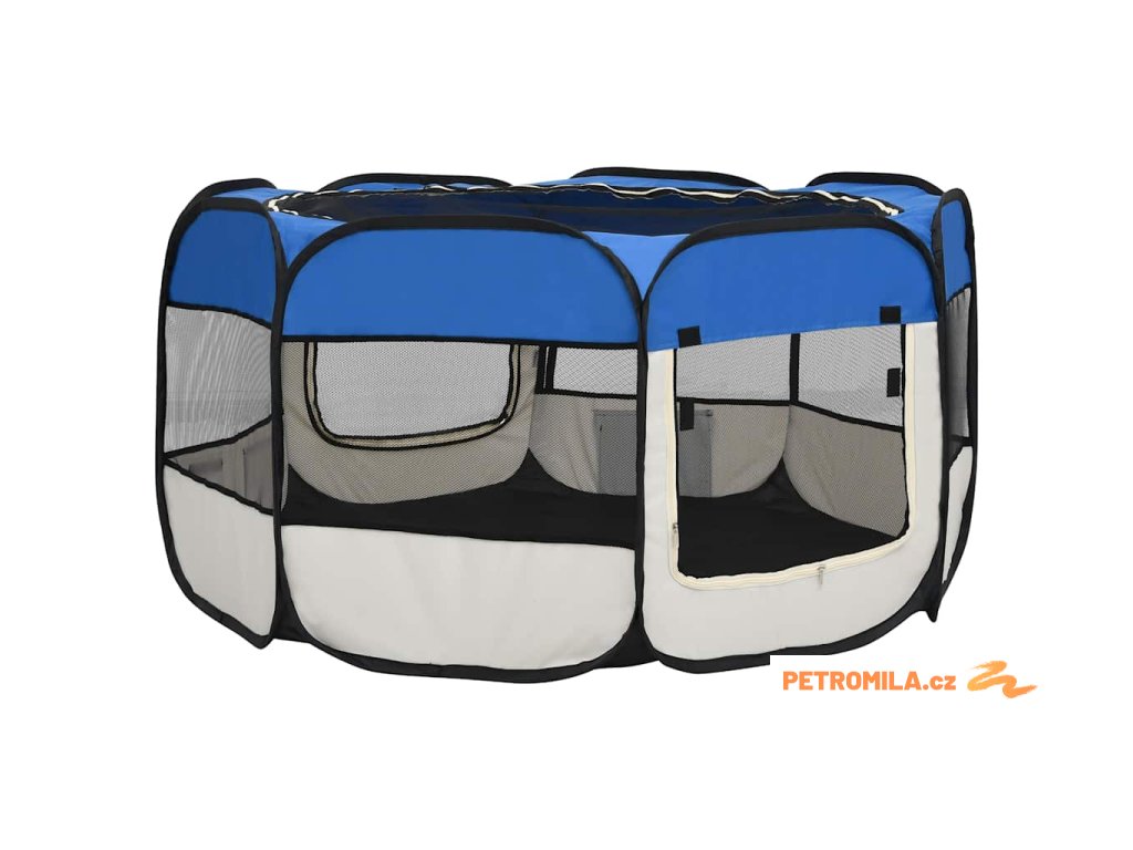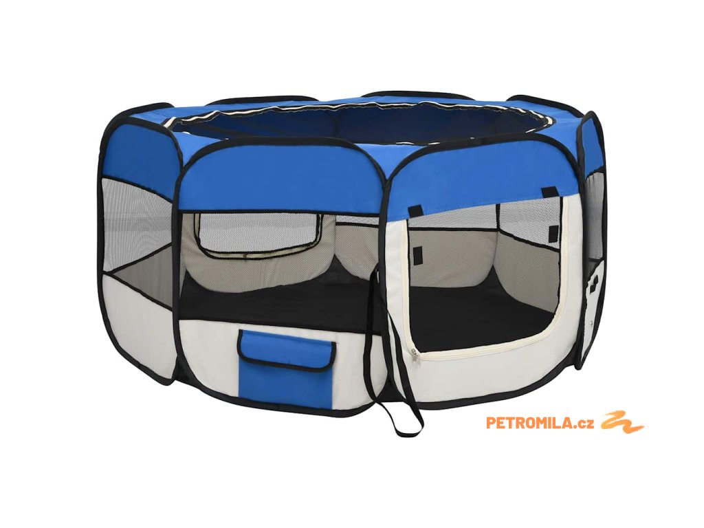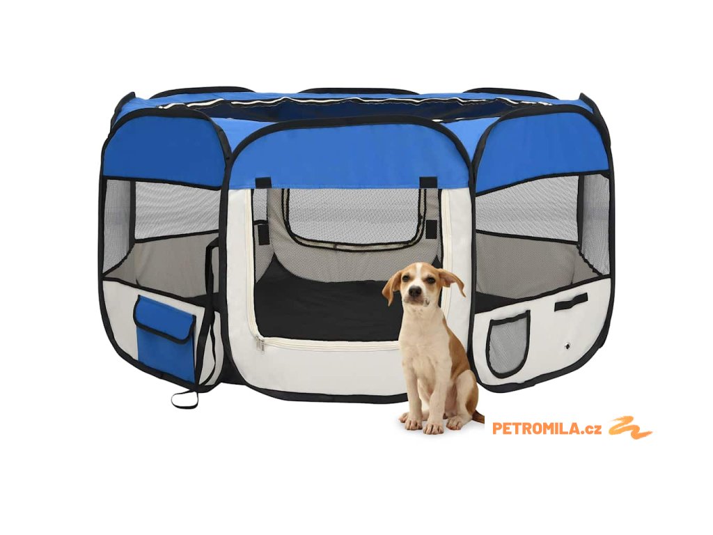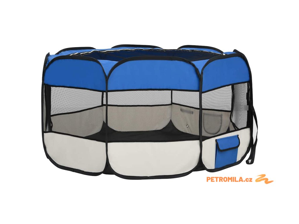 Skládací ohrádka pro psy s taškou modrá 125 x 125 x 61 cm