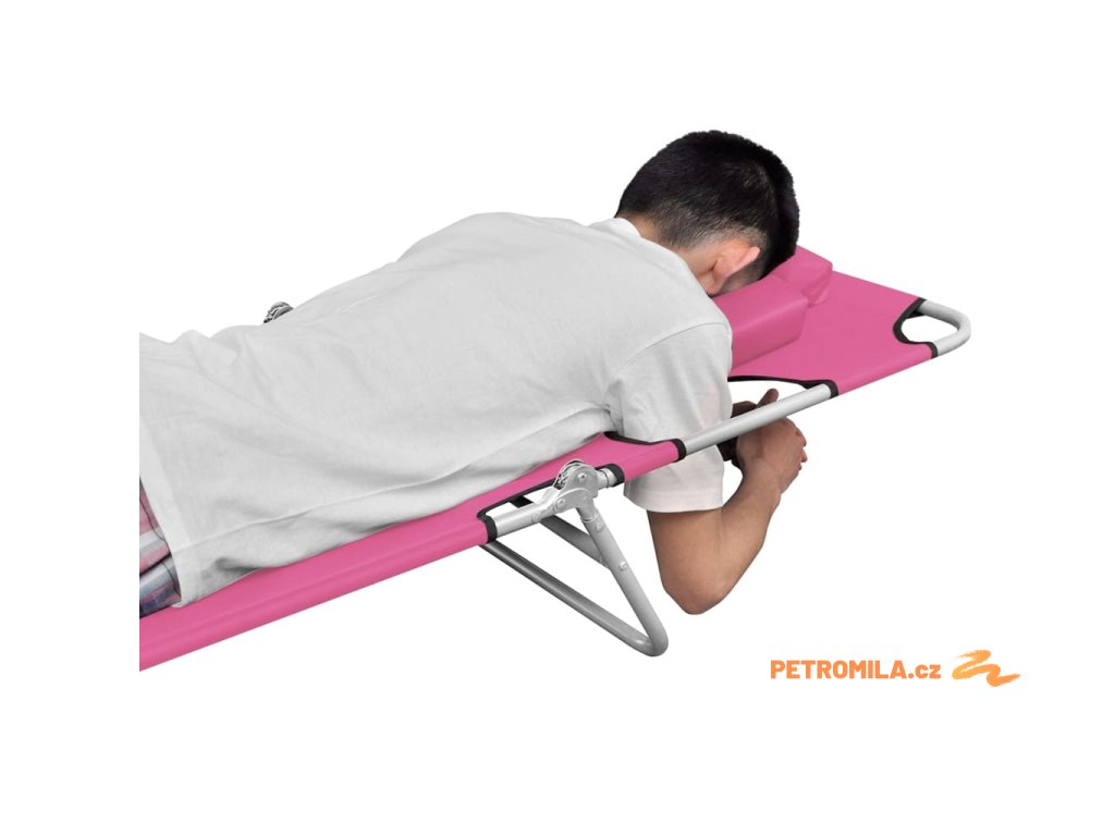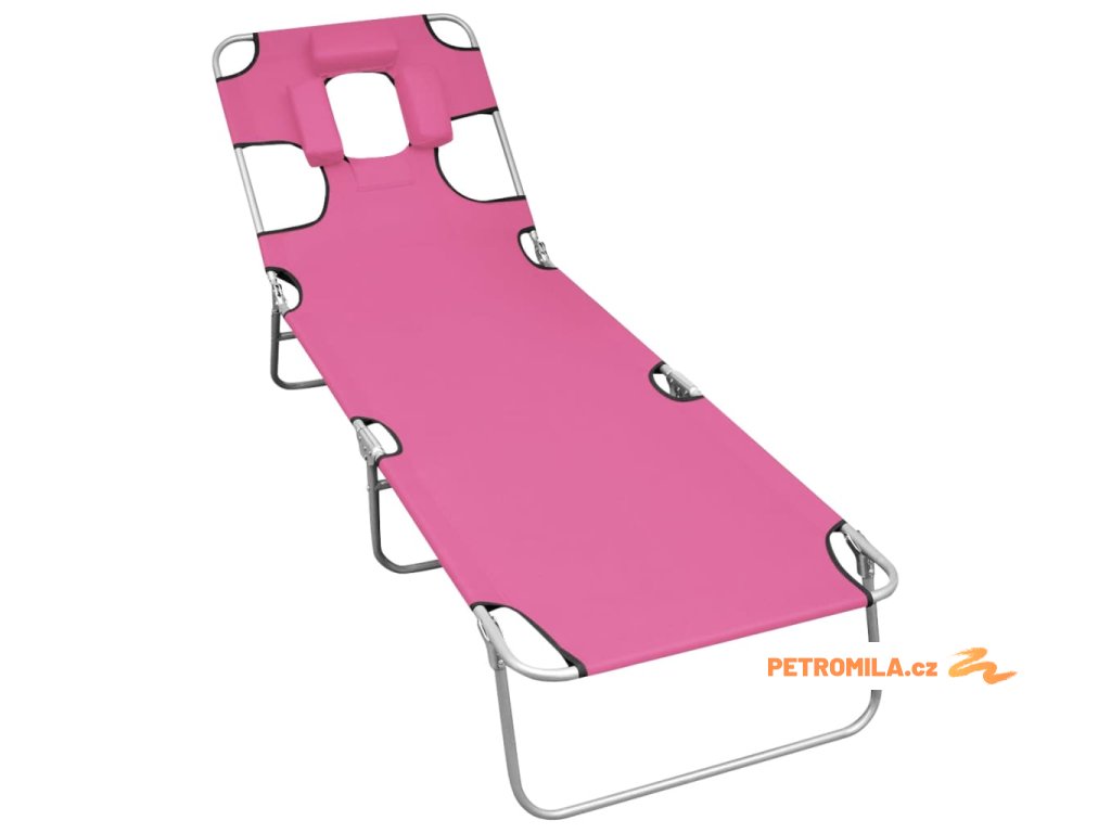 Skládací opalovací lehátko s podhlavníkem ocel fuchsiově růžové