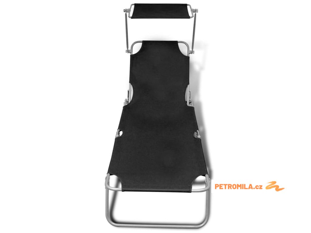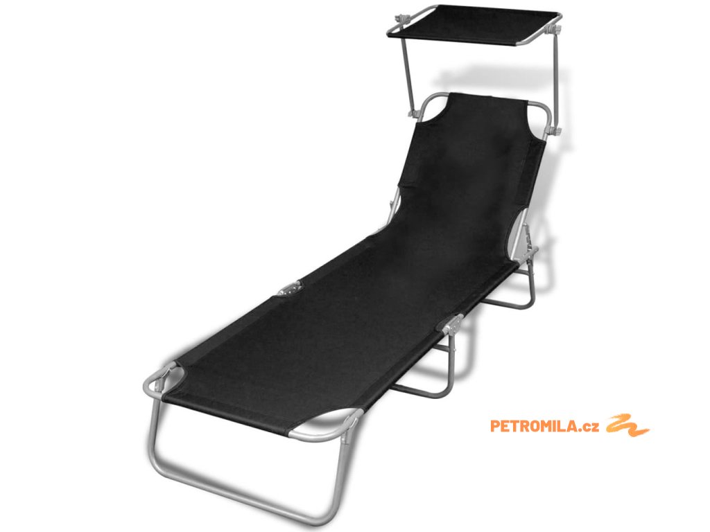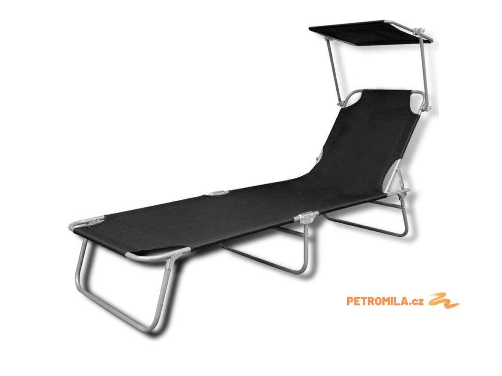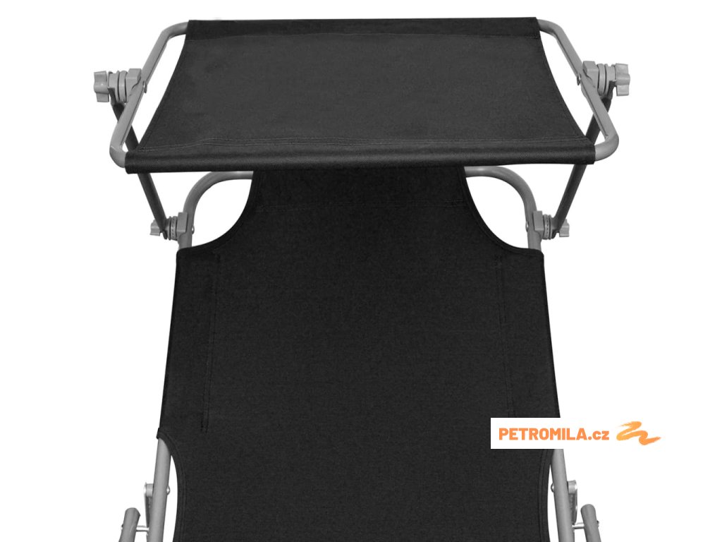 Skládací opalovací lehátko se stříškou ocel a textil černé
