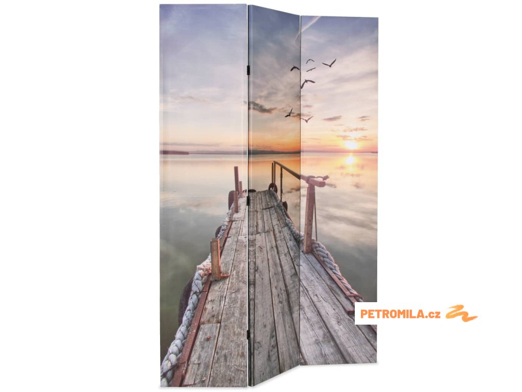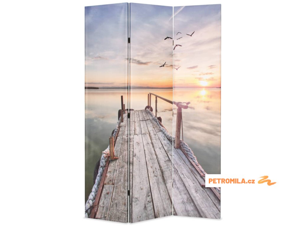 Paraván má masivní dřevěný rám a je pokrytý odolným plátnem, které má krásný fototisk zobrazující jezero při západu slunce. Ve vašem pokoji vytvoří klidné prostředí. Paraván lze také snadno složit pro úsporné skladování, když se nepoužívá.