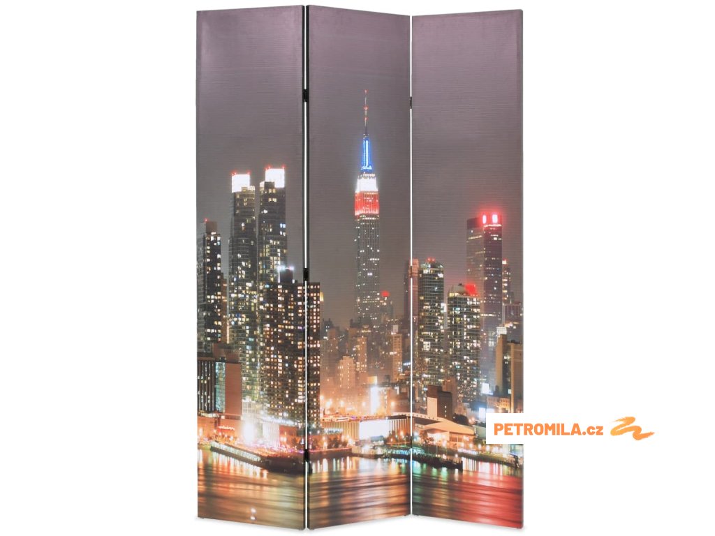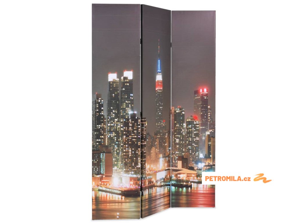 Tato dělící stěna má masivní dřevěný rám a je potažená odolným plátnem, na kterém je velkolepá fotografie vyobrazující panoramatický pohled na noční New York a nádhernou Empire State Building a vašemu interiéru dodá nádech moderního stylu. Tato dělící stěna může být pro úsporu místa také jednoduše složena, když ji právě nepoužíváte.
