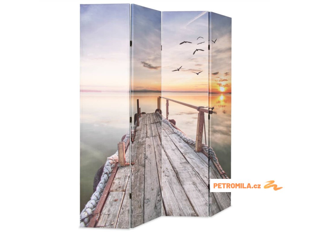 Paraván má masivní dřevěný rám a je pokrytý odolným plátnem, které má krásný fototisk zobrazující jezero při západu slunce. Ve vašem pokoji vytvoří klidné prostředí. Paraván lze také snadno složit pro úsporné skladování, když se nepoužívá.