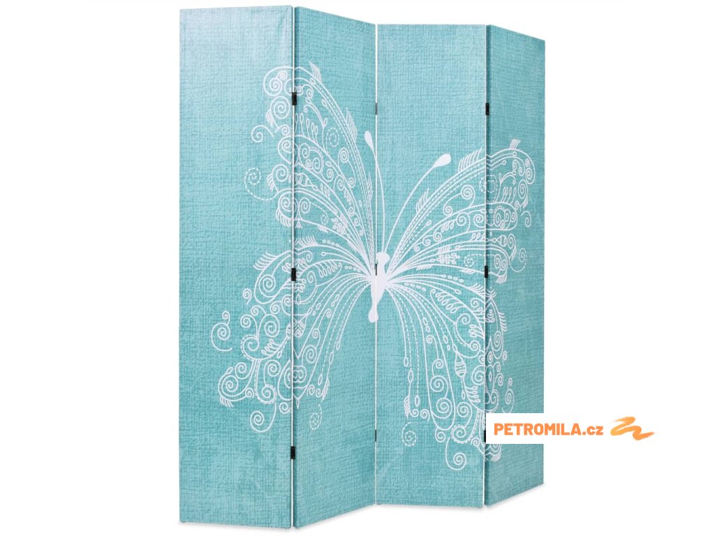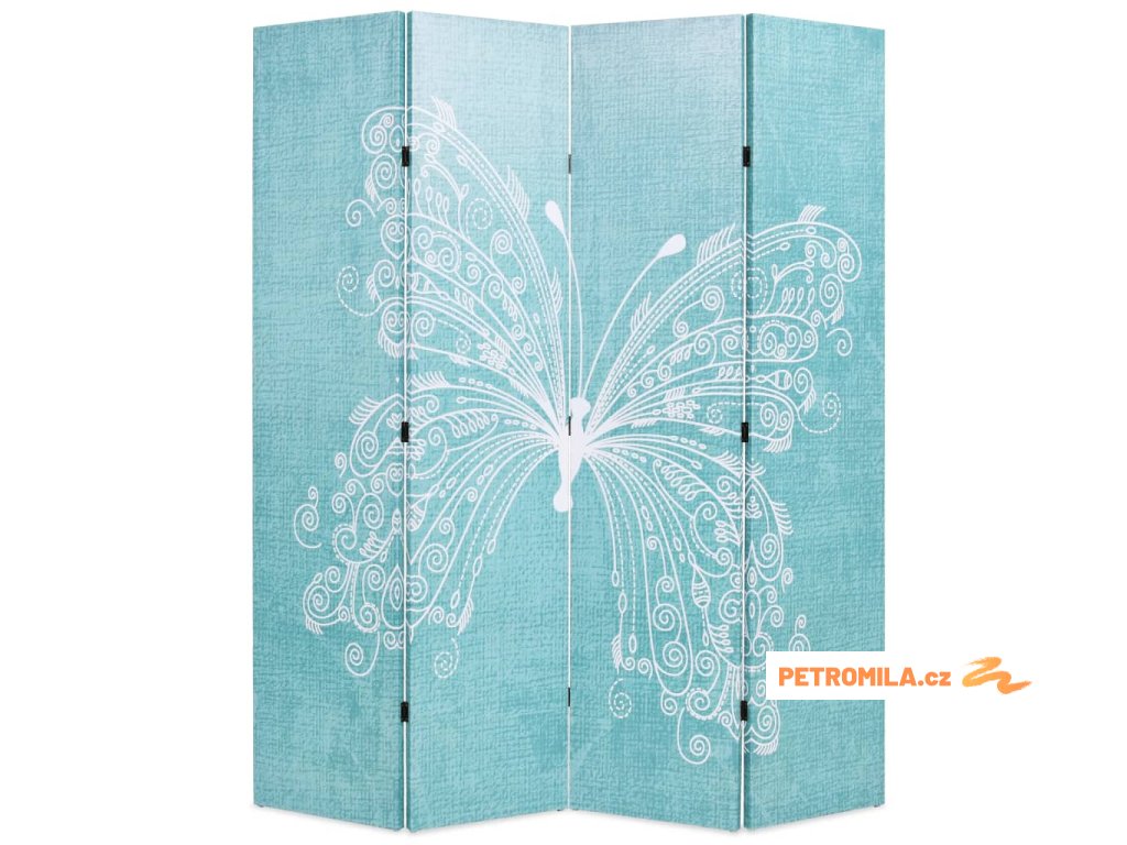 Převlékací paraván má masivní dřevěný rám a je pokryt odolným plátnem, které má na obou stranách krásný motýlí potisk. Ve vašem pokoji vytvoří romantickou atmosféru. Dělící stěnu lze také snadno složit pro úsporné skladování, když ji právě nepoužíváte.