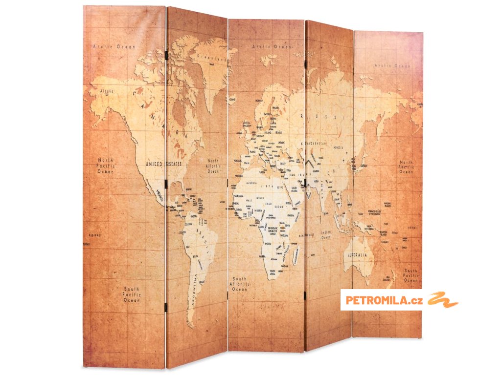 Skládací paraván 200 x 170 cm Mapa světa žlutý