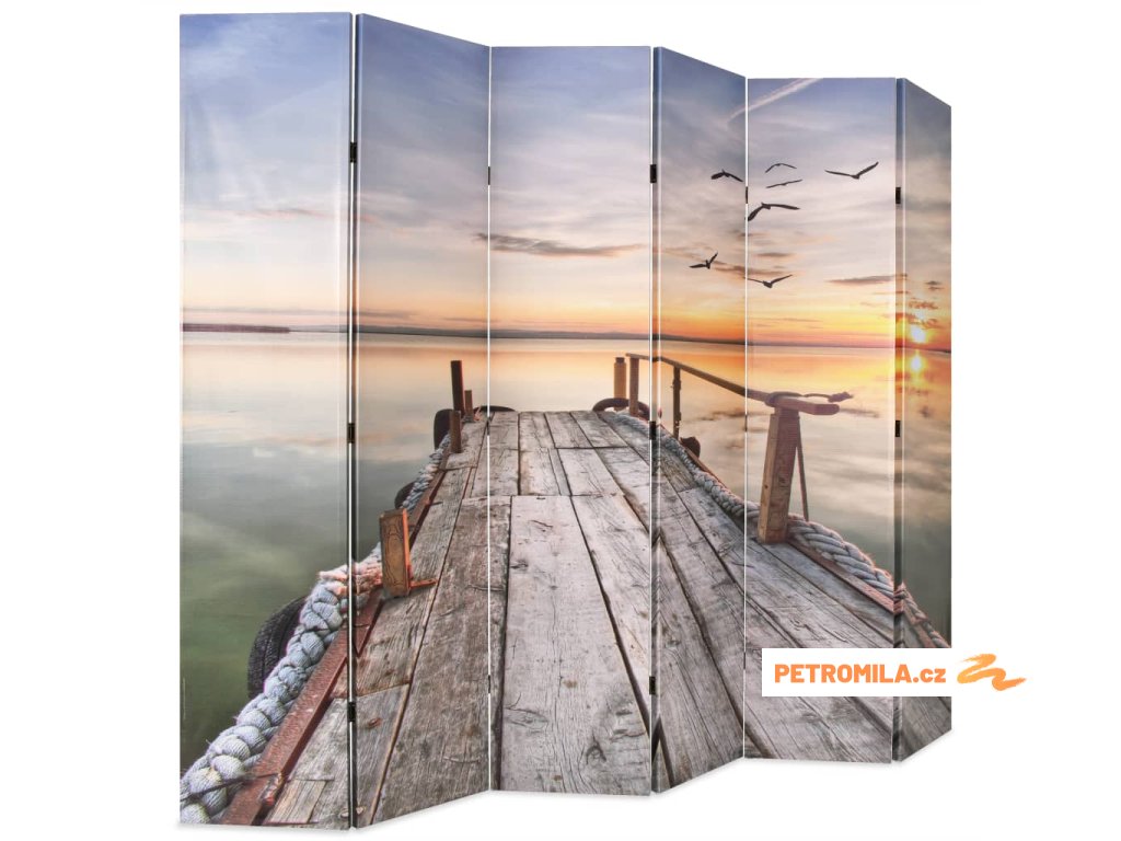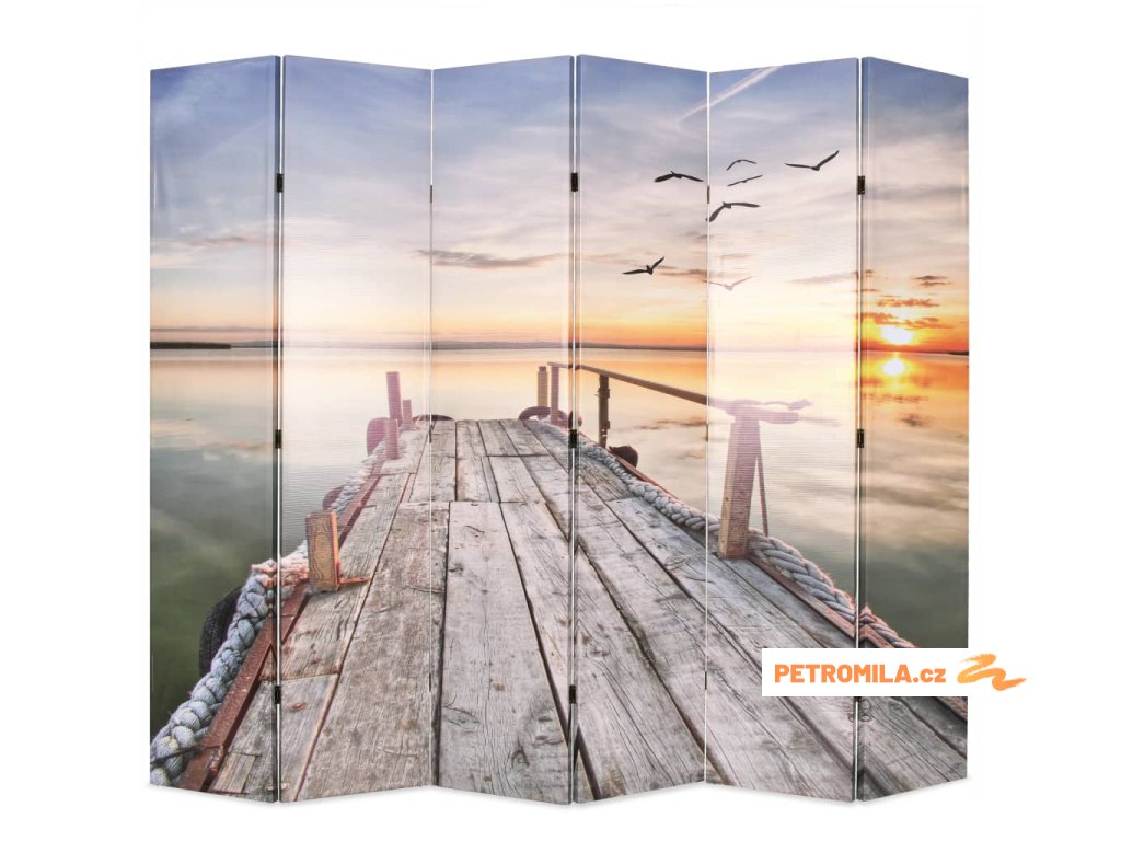 Paraván má masivní dřevěný rám a je pokrytý odolným plátnem, které má krásný fototisk zobrazující jezero při západu slunce. Ve vašem pokoji vytvoří klidné prostředí. Paraván lze také snadno složit pro úsporné skladování, když se nepoužívá.