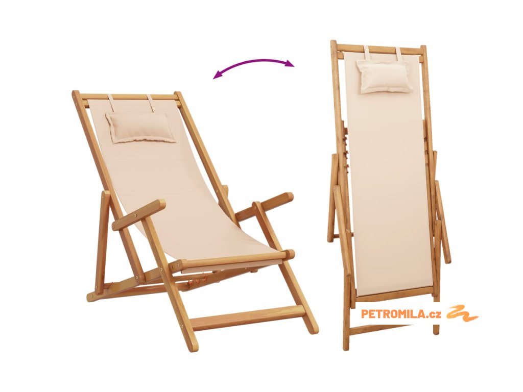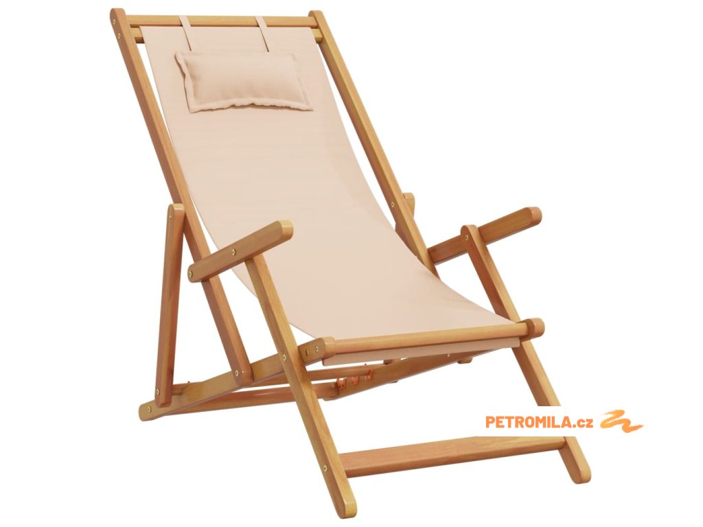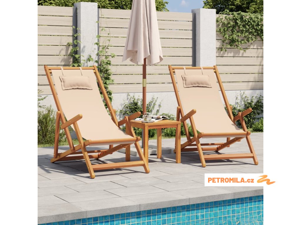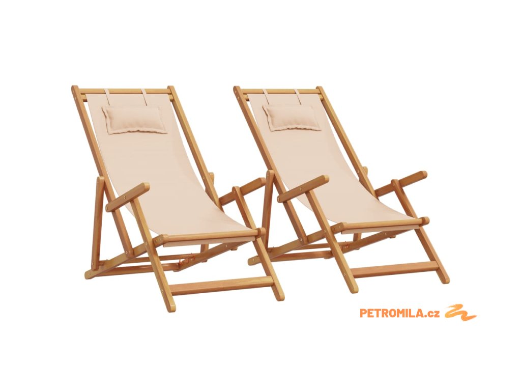 Skládací plážová křesla 2 ks béžová textil a masivní dřevo