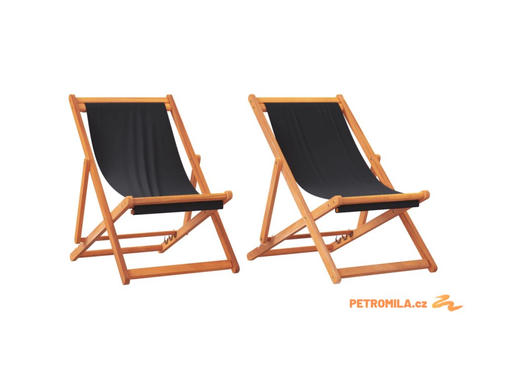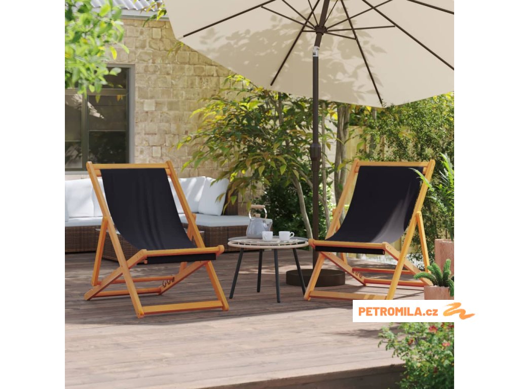Skládací plážová křesla 2 ks černá textil