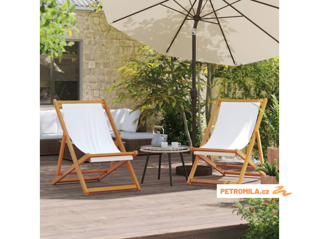 Skládací plážová křesla 2ks modrá a bílá textil a masivní dřevo