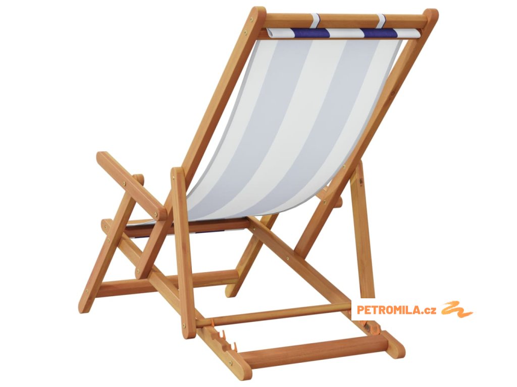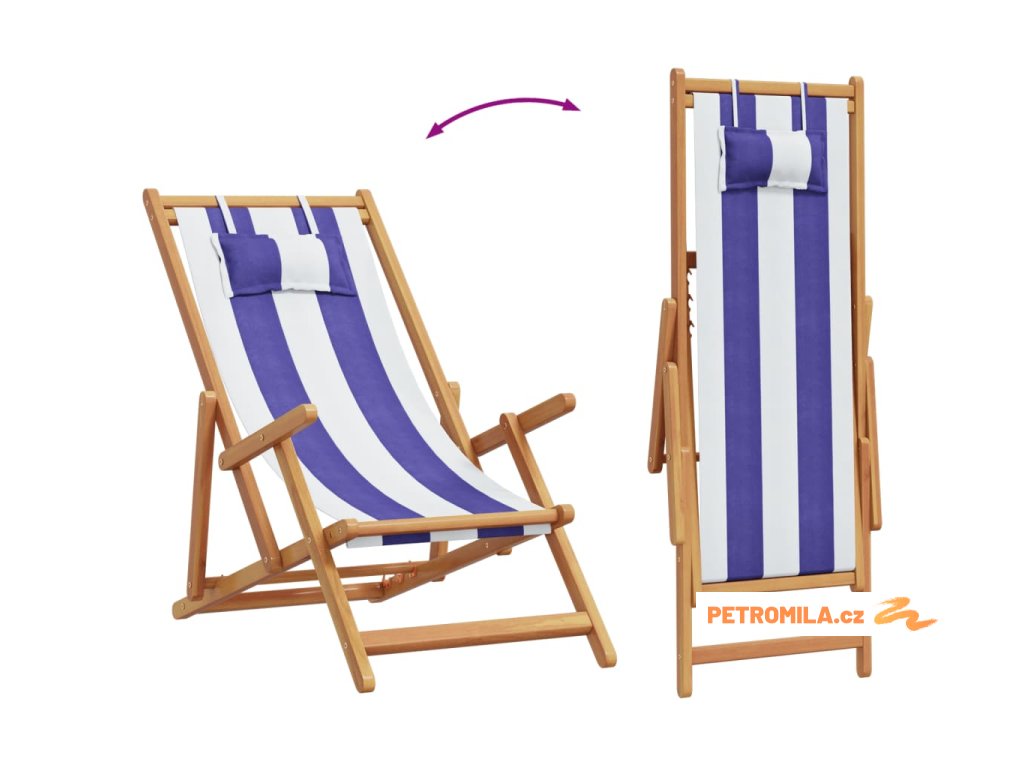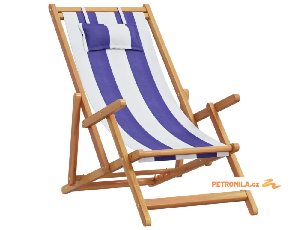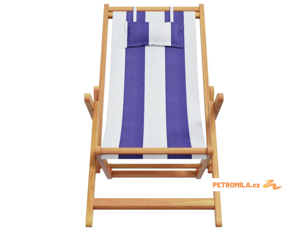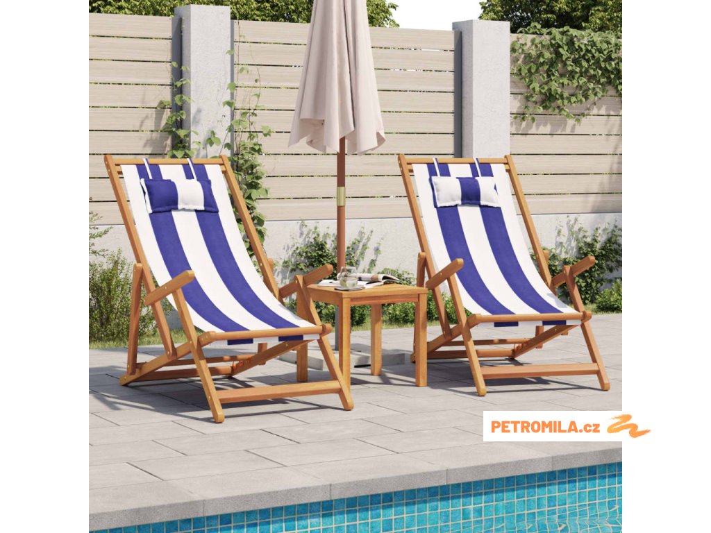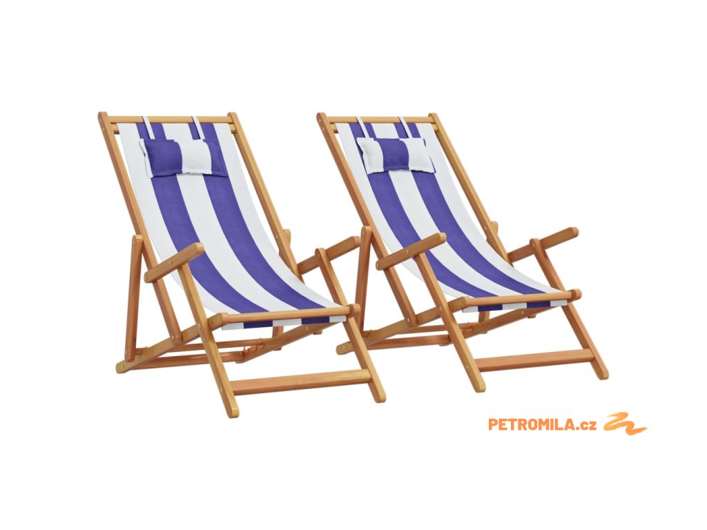 Skládací plážová křesla 2ks modrá a bílá textil a masivní dřevo