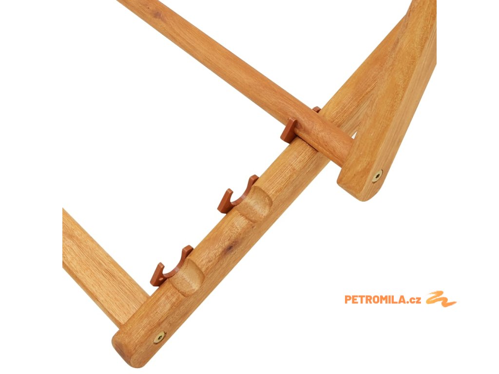 - Materiál: masivní eukalyptové dřevo s olejovaným povrchem, textil (100% polyester)